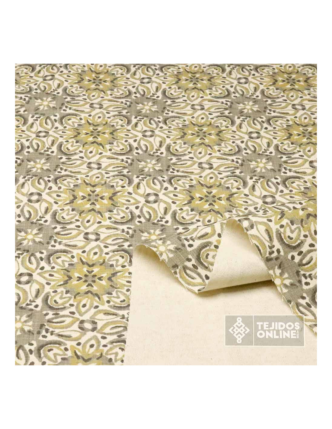 La Tela de Hogar Azulejo Panamá es un tejido doble de ancho, suave al tacto y de gran calidad. Tejido con un estampado al estilo vintage, recordando unos antiguos azulejos de los años 70 en tonalidades neutras. Esta tela está fabricada y pensada para dar un toque de un ambiente vintage con su patrón de flores al estilo azulejo antiguo y a su vez muy moderno, ofreciendo una elegancia discreta que se coordina a la perfección con nuestras telas lisas panamá para tapizar. A continuación vamos a contarte los principales usos de esta tela de panamá.