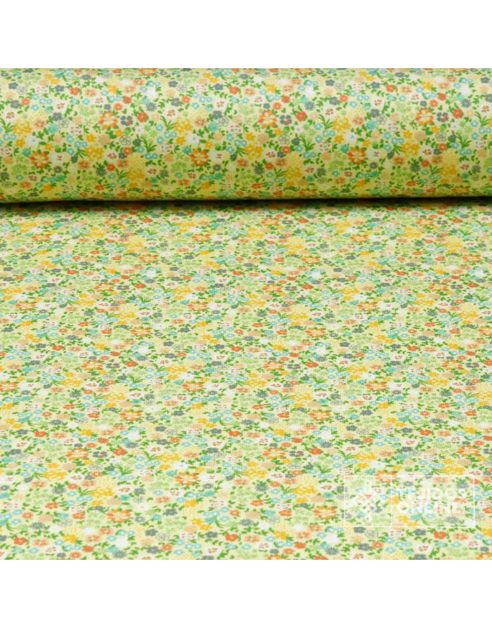 Te presentamos la Tela Piqué Canutillo de Flores Pequeñas, un tejido con cuerpo, suave y de cierto grosor, ideal para todo tipo de confecciones infantiles y de hogar. Esta tela está compuesta por 100% algodón, sin elasticidad y con una textura acanalada característica del piqué canutillo. El estampado está formado por pequeñas flores de aproximadamente 1 cm de alto al estilo liberty disponible en cinco encantadores colores: verde, amarillo, celeste, rojo y rosa. Además, su ancho de 1.50 metros te permitirá aprovechar cada centímetro para cualquier proyecto creativo.