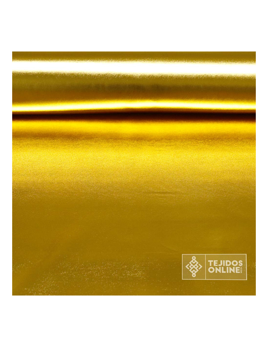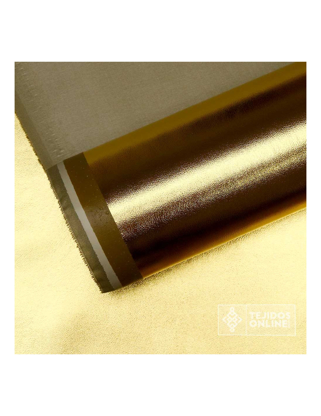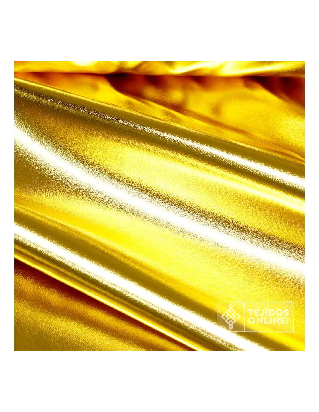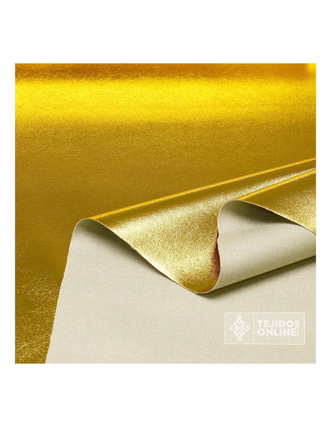 Tela Polipiel Dorada Fantasía es un tejido con cierta grosura, con elasticidad, de cierto peso y suave. La tela de polipiel se caracteriza por su tacto sintético y dando en efecto de satinado a la vista ya que este tejido que con su efecto de reflejo desprende brillo y a su vez no llega a ser una polipiel lisa completamente ya que tiene un dibujo estilo craquelado siendo de ella una tela fantástica. Tela con un ancho de 1.50 metros lo que la hacen ideal para la creación de cualquier proyecto de costura.