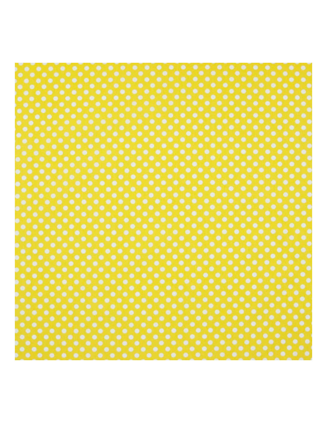 Popelín Amarillo Lunar Blanco Unión. Esta tela de popelín amarillo cuenta con lunares blancos estampados de forma simétrica y tiene un cuerpo y cierta finura que la hace resistente y fácil de trabajar. Es perfecta para todo tipo de confecciones, desde blusas y faldas hasta vestidos y camisas.