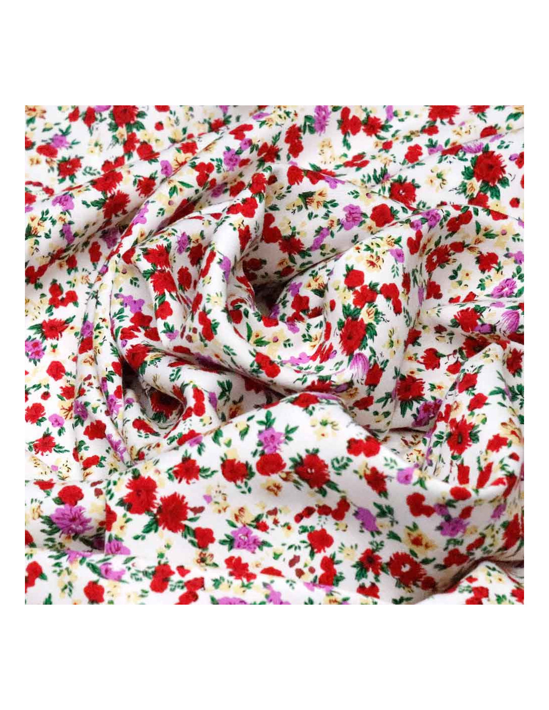 Viscosa Flores Rojas Malva | Telas Flores Estampadas