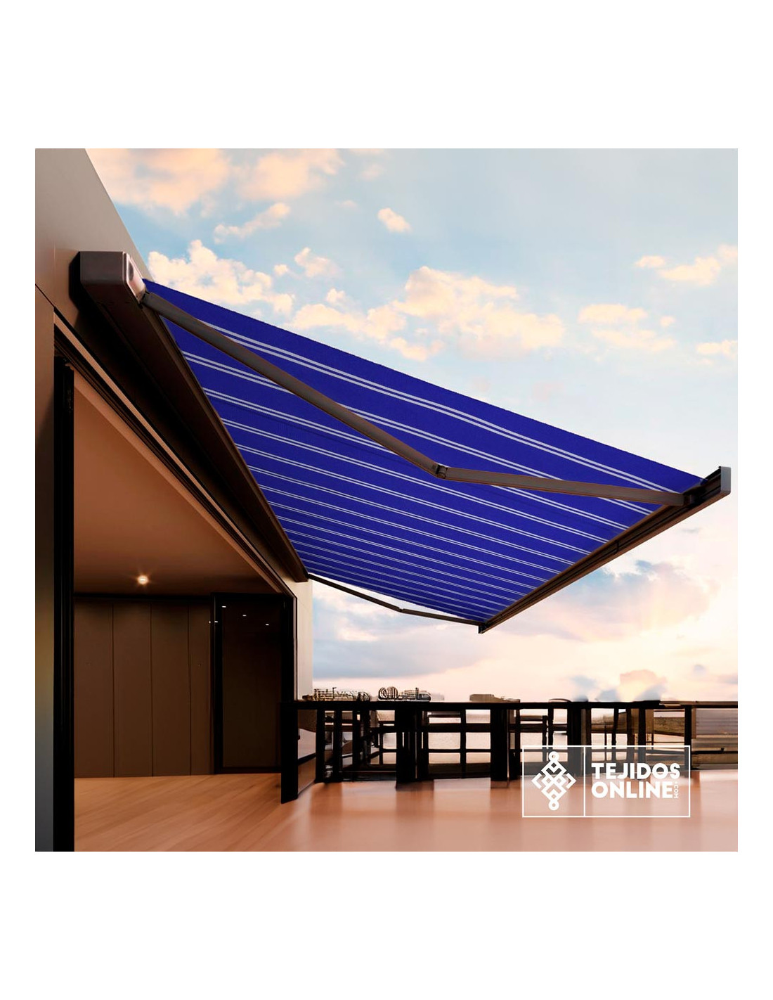 Lona Toldo Azul Rayas Blancas | Telas para Toldos