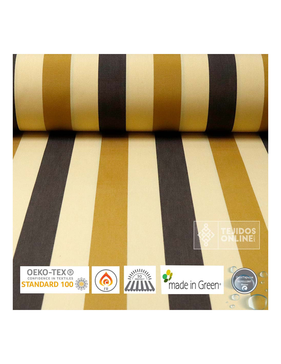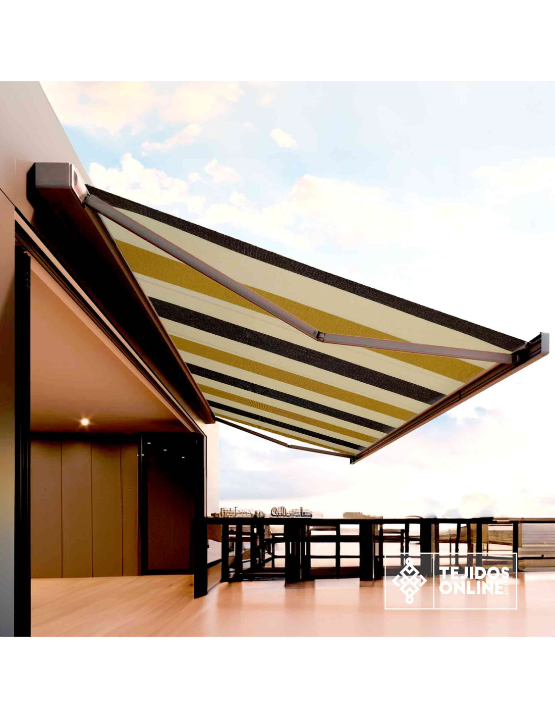 Te presentamos nuestra lona de toldo color albero, marrón y beige, con un ancho de 3.20 metros, es un tejido de cierto grosor, con un tacto poroso, fabricado poliéster reciclado para ser de él un toldo de lo más resistente. Este toldo de rayas de colores tierra se caracteriza por la gran variedad de usos que podemos realizar con él, desde tapizados hasta sobras para exteriores. Gracias a su tonalidad marrón y beige profundo esta lona de toldo absorbe gran cantidad de luz para tener una sombra de gran calidad en tus espacios exteriores. Vamos a contarte los usos principales de nuestros toldos.