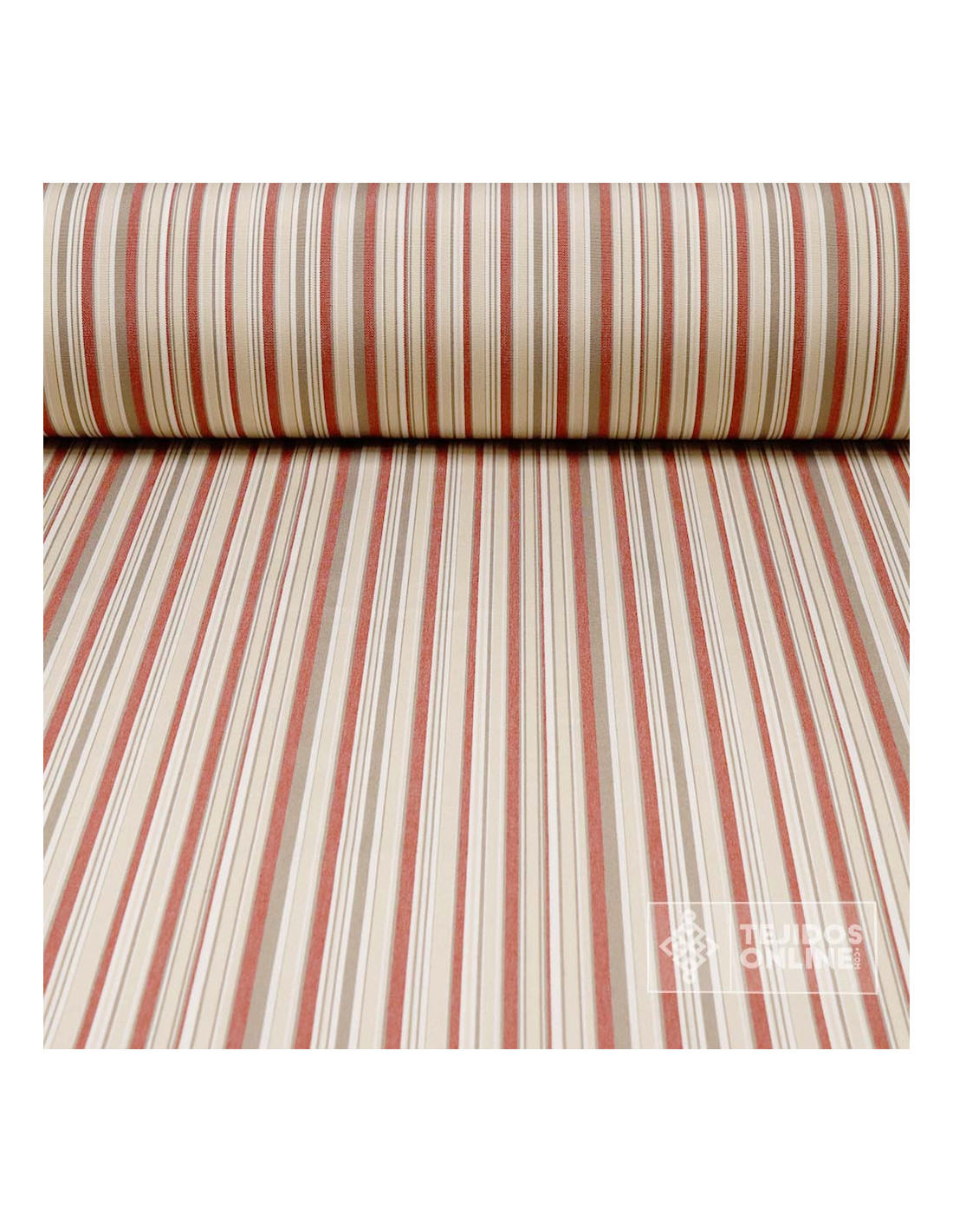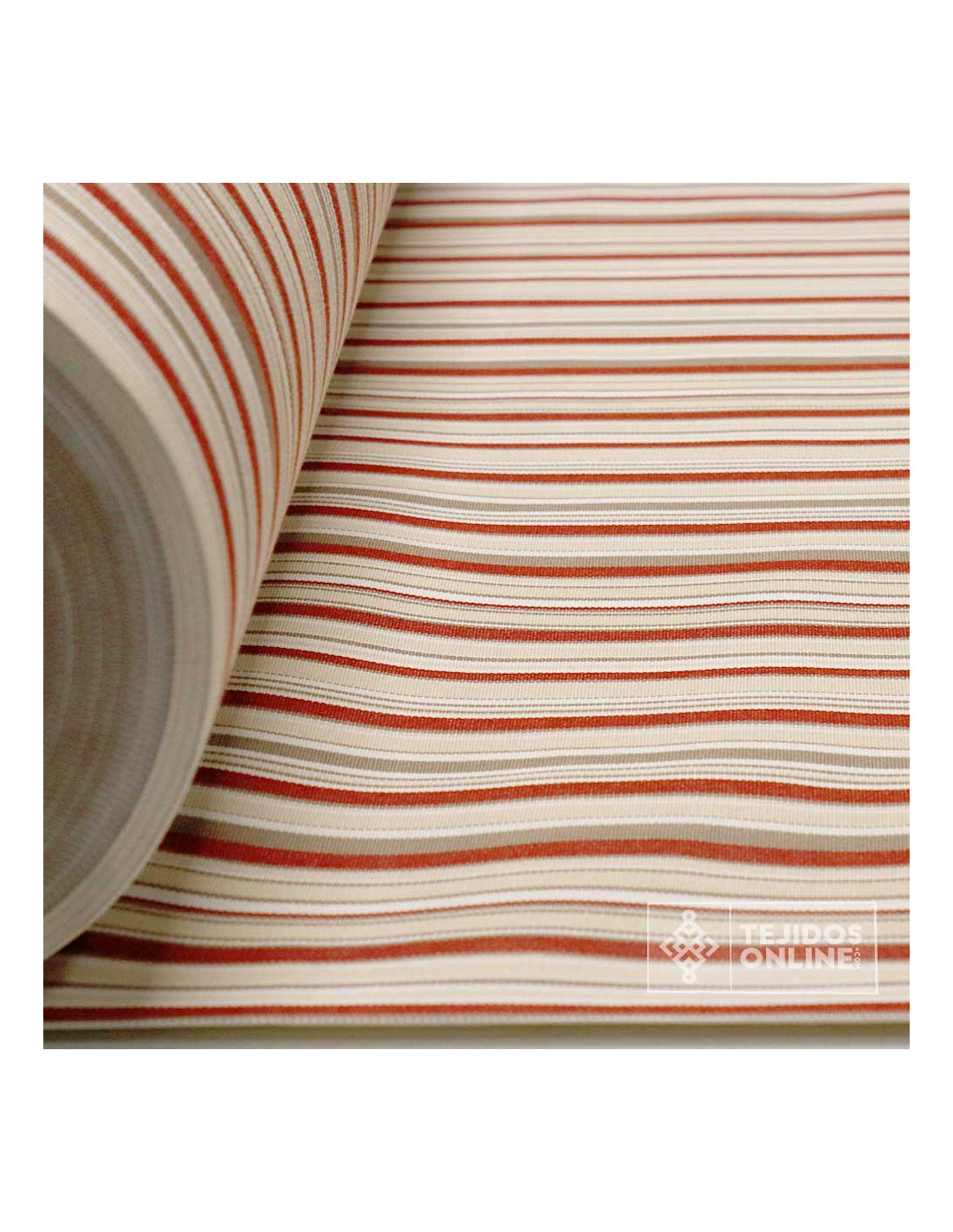 Conoce nuestra lona de toldo de rayas en color caldera y beige acompañada de finas rayas de color topo y blancas, os cuento más sobre este precioso toldo. Es una lona de Toldo con un ancho de 3.20 metros siendo un tejido de cierto grosor, con un tacto poroso, fabricado poliéster reciclado. Este toldo de rayas se caracteriza por la gran variedad de usos que podemos realizar con él, desde tapizados hasta sombras para exteriores. Gracias a su tonalidades esta lona de toldo absorbe gran cantidad de luz para tener una sombra de gran calidad en tus espacios exteriores sin perder la claridad. Si quieres realizar una combinación perfecta, nuestro toldo liso biege o toldo calera le combinan perfectamente.