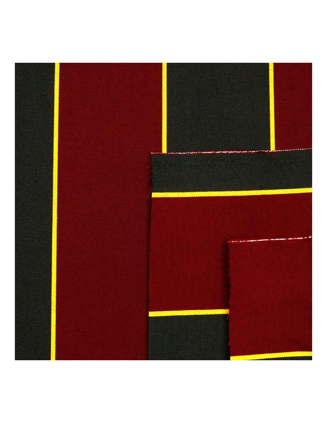 Conoce nuestra lona de toldo de rayas en color burdeos y verde con una pequeña raya de color amarillo destacante. Toldo con un ancho de 3.20 metros siendo un tejido de cierto grosor, con un tacto poroso, fabricado poliéster reciclado. Este toldo de rayas se caracteriza por la gran variedad de usos que podemos realizar con él, desde tapizados hasta sombras para exteriores. Gracias a su tonalidades oscuras esta lona de toldo absorbe gran cantidad de luz para tener una sombra de gran calidad en tus espacios exteriores.