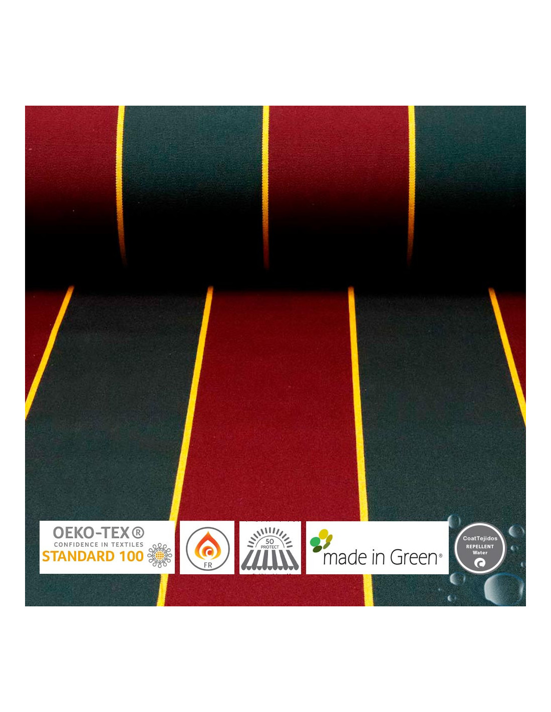 Toldo de Rayas Burdeos y Verde | Telas para Toldos