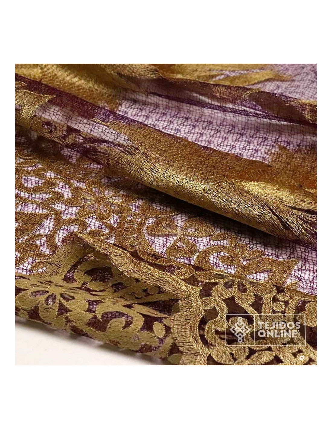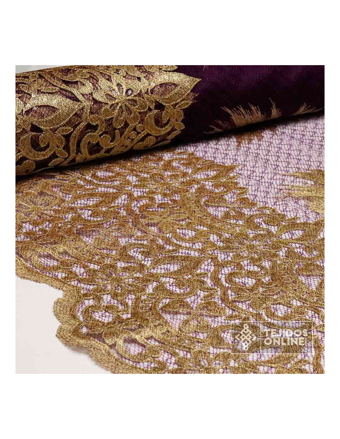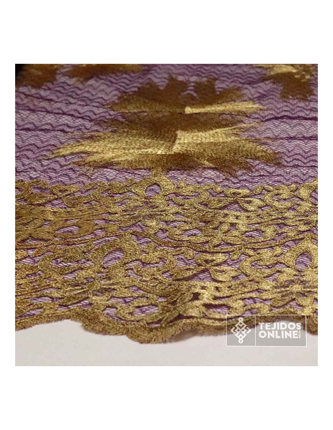 Descubre nuestro Tul Encaje Franja Inferior al mejor precio. Tela en color dorado viejo y lila con grandes forjados lo que lo hace ideal para cualquier proyecto de moda y proyectos cofrades. No te quedes sin él y añade algún metro a tu cesta y destaca en tus proyectos.