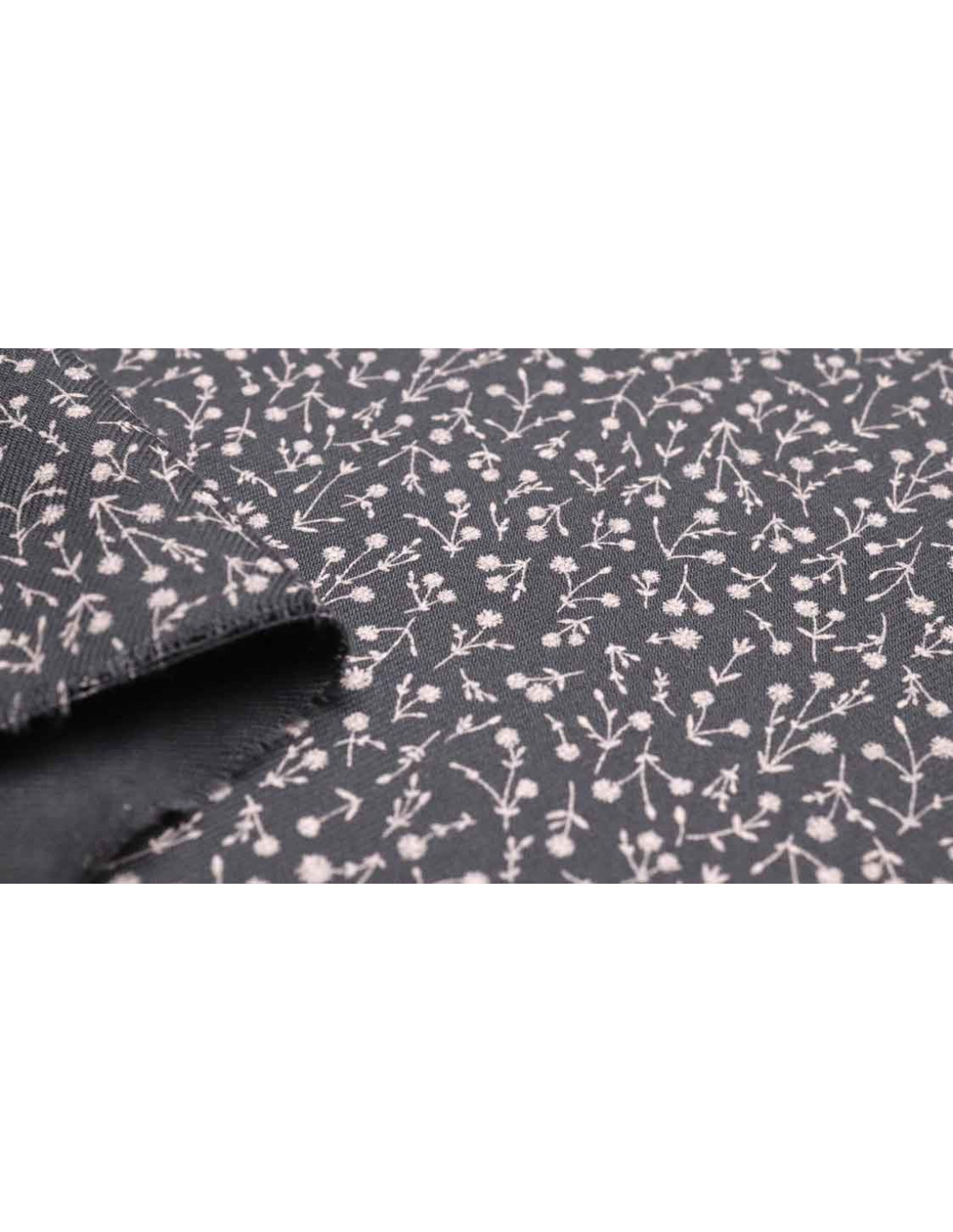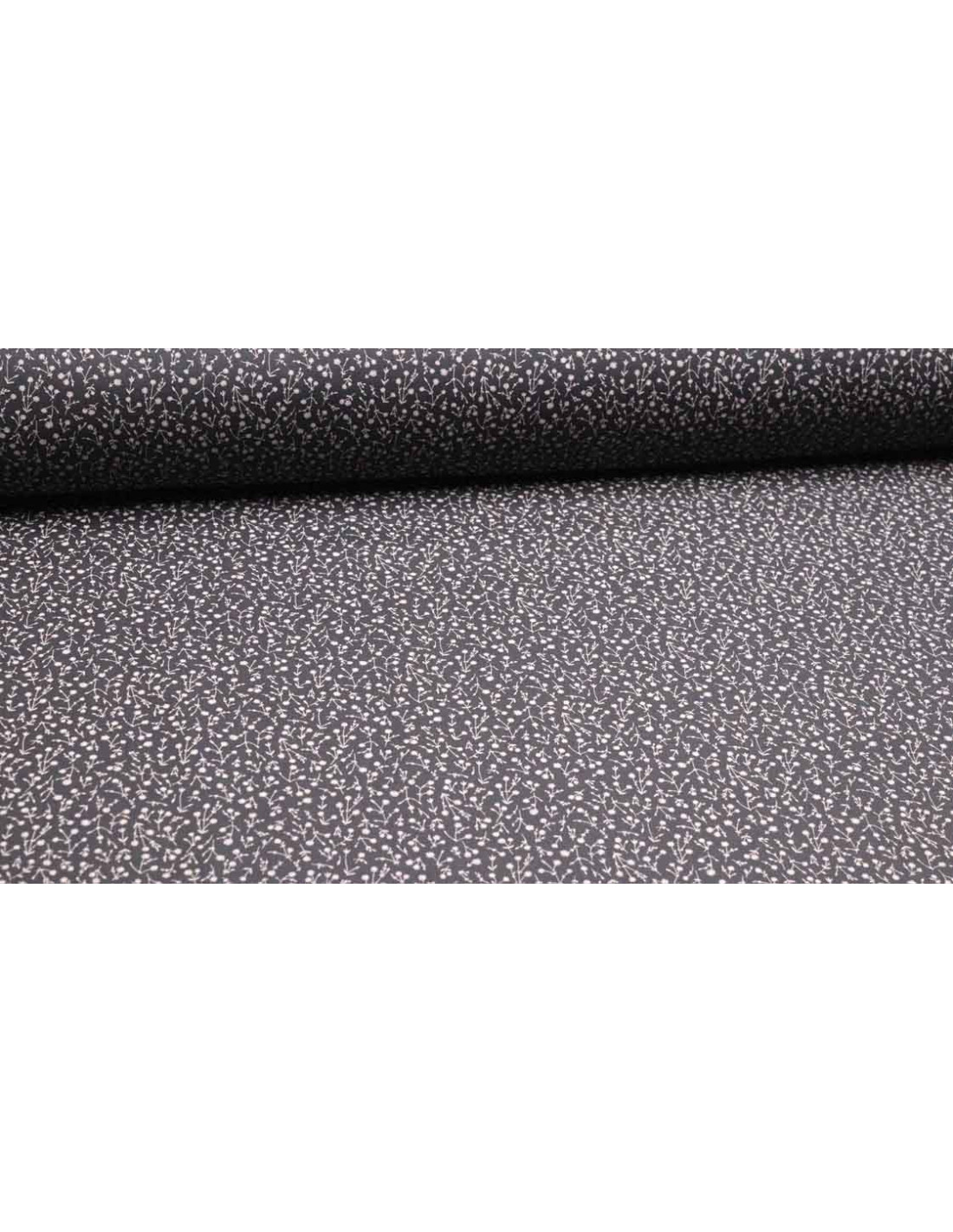 Viella liberty Ainhoa Gris, es una tela clásica y elegante, con suavidad y con estampados de pequeñas flores. Tejido con el cuerpo justo para crear formas a tus proyectos. Se caracteriza por su suavidad, y estampados pequeños. Este tejido, es ideal para todo tipo de confecciones como: vestidos, chaquetas, faldas, pantalones, blusas, etc… En galería os mostramos una imagen donde comprobar el revés del tejido.