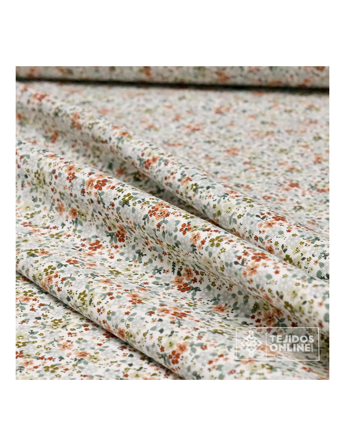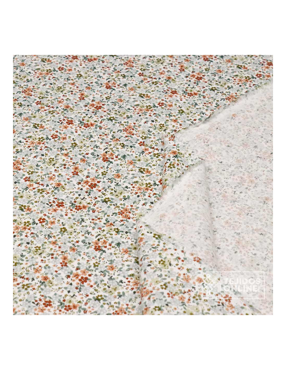 La Viella Flores Bellas Juana, es un tejido compuesto en 100% algodón con estamapdos de pequeñas flores destacando el color caldera, camel oscuro o burdeos, según color a elejir. Esta viella es un tejido de cierto cuerpo, con gran suavidad, poco peso y sin lycra siendo ideal para añadir un toque de originalidad a cualquier proyecto de moda infantil. Esta viella es un tejido ideal para confecciones infantiles siendo un tejido doble de ancho.