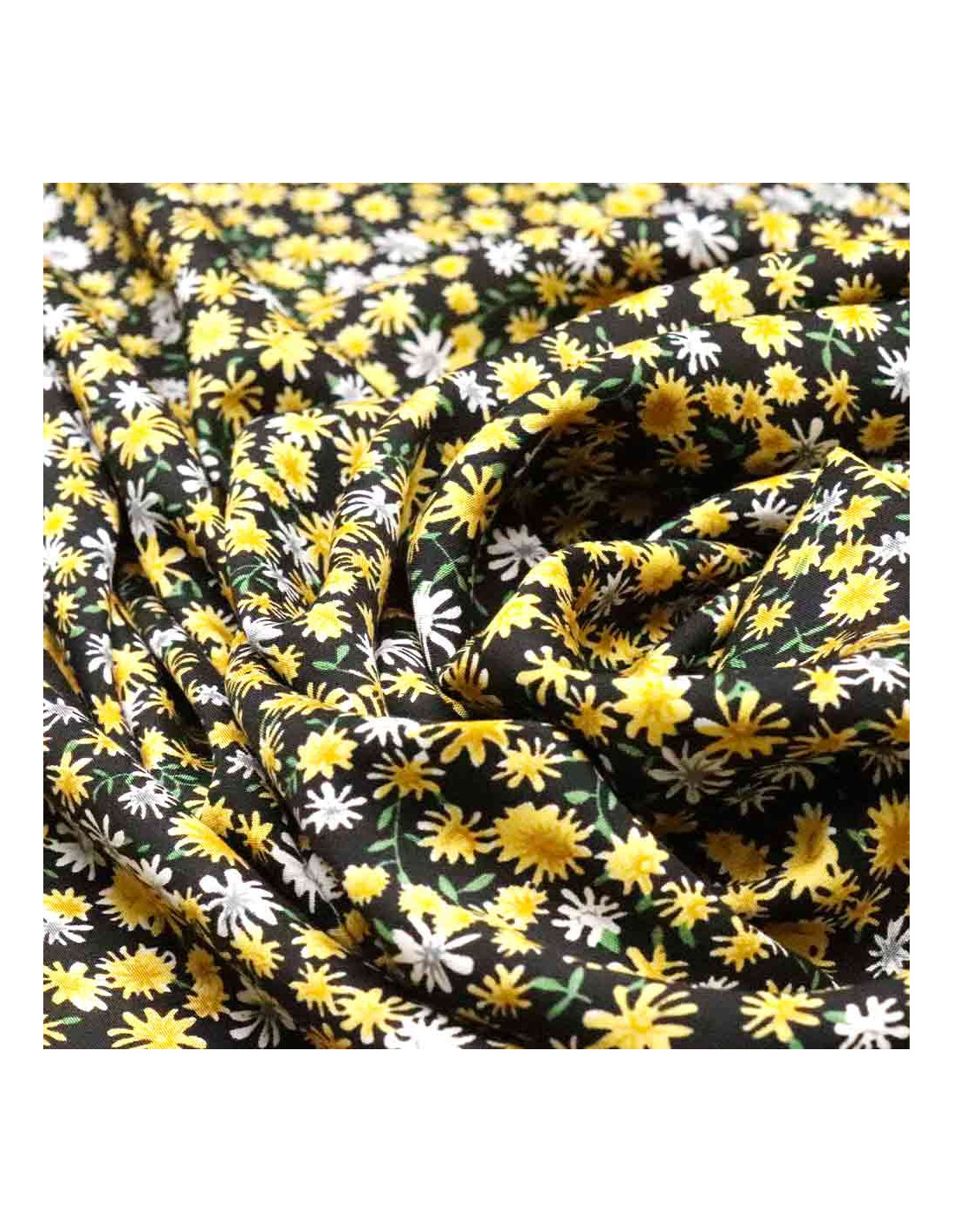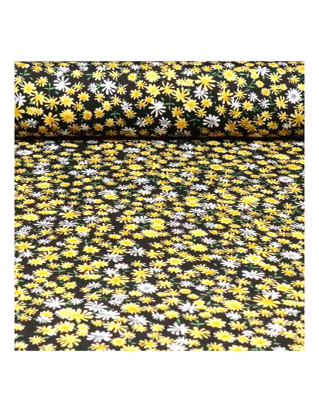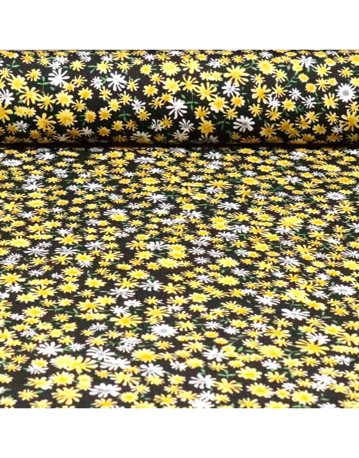 Tela de viscosa con estampados de flores amarillas | Telas 100% Viscosa