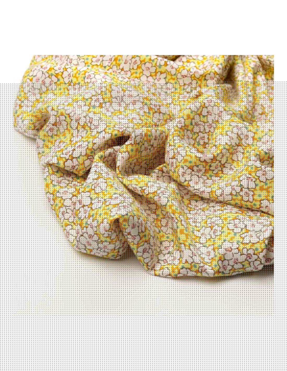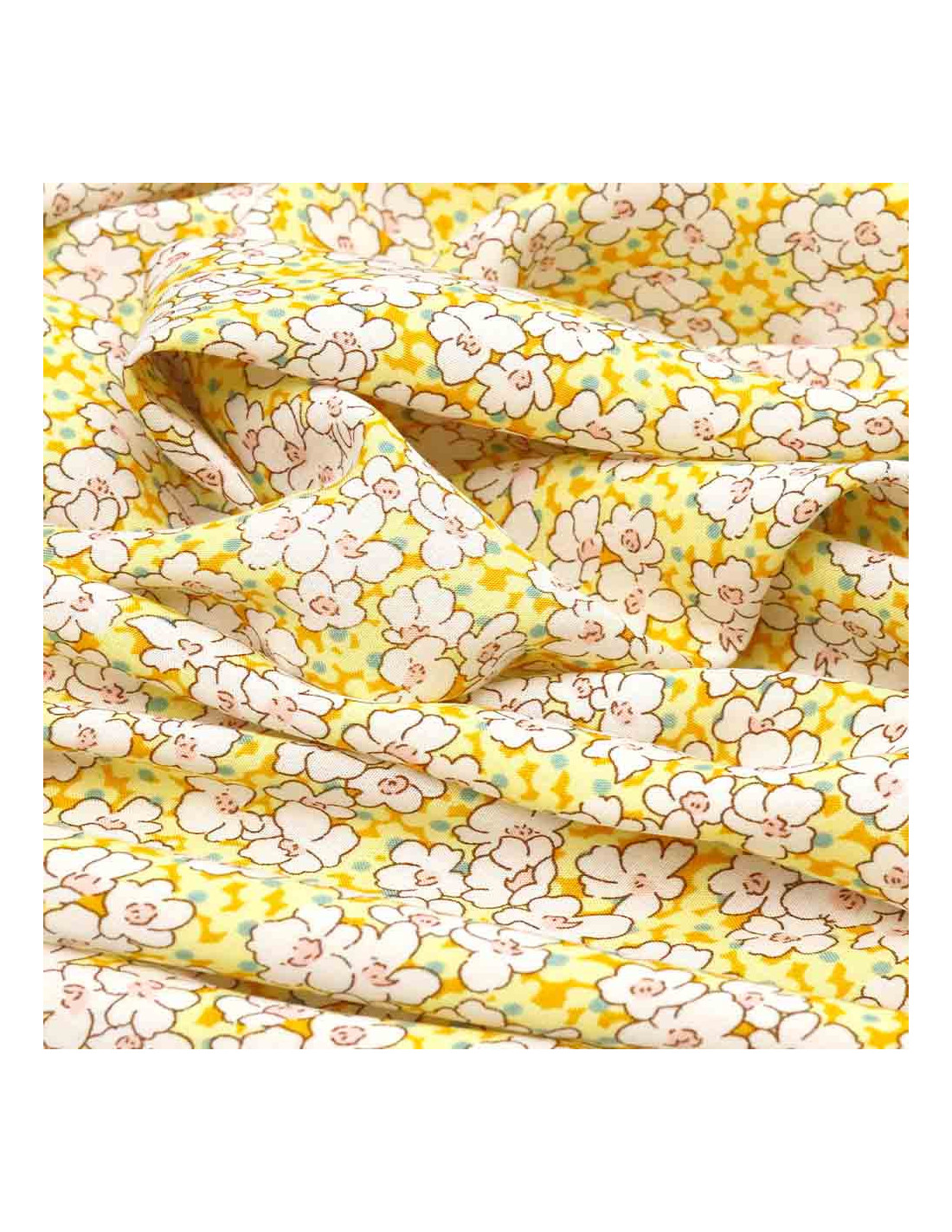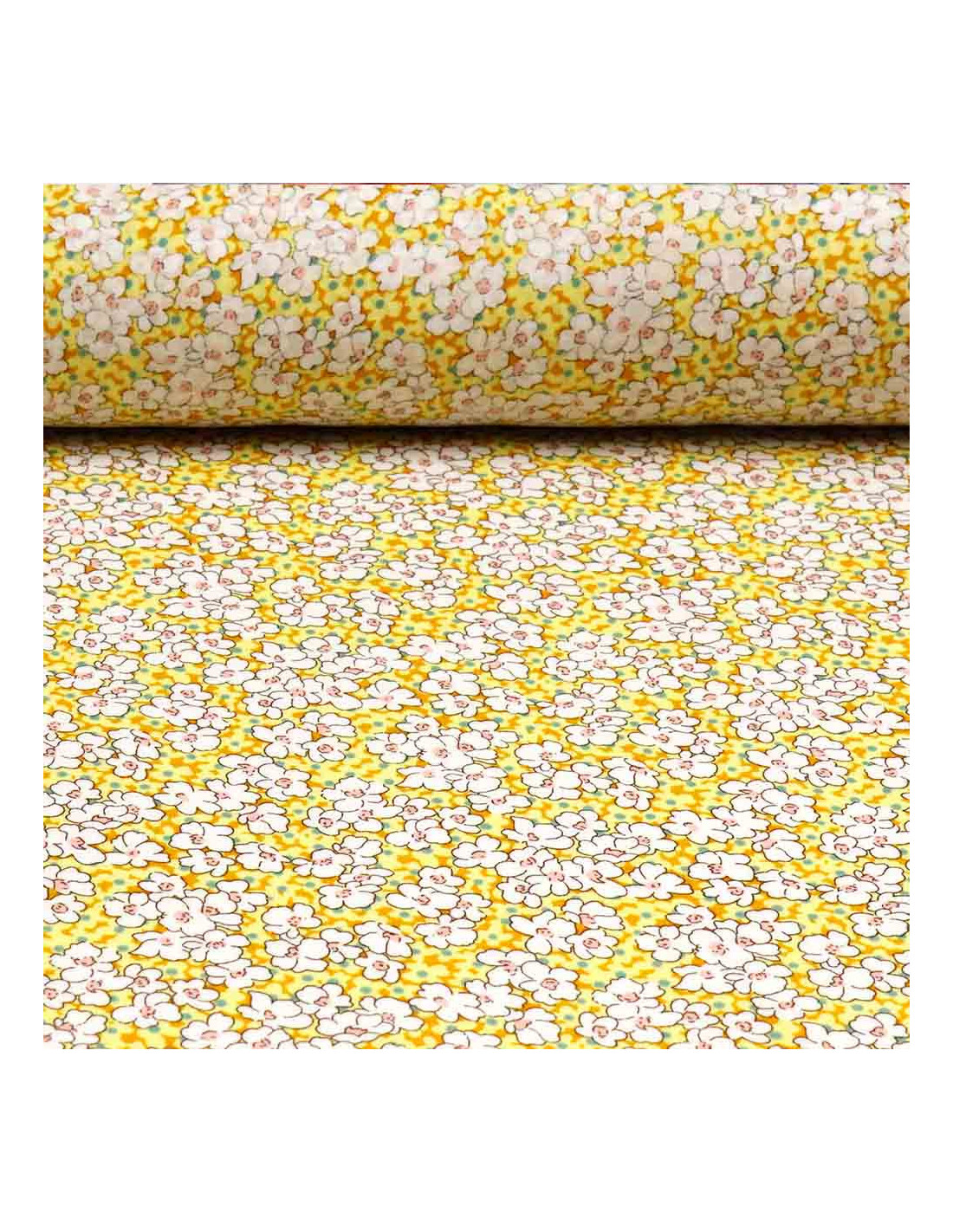 Tela de Viscosa Amarilla Estampada de Flores Margarita. Tela de viscosa, tejido suave, caído, y de gran movimiento. Tela de Viscosa se asemeja de tacto a una tela de algodón siendo al tacto con sensación de frescor. Viscosa estampada de flores predominando el tono fondo amarillo y destacando su estampados de flores margaritas. La viscosas son ideales para; vestidos, camisas, faldas, blusas, monos, etc… y confecciones de moda que busquen movimiento.