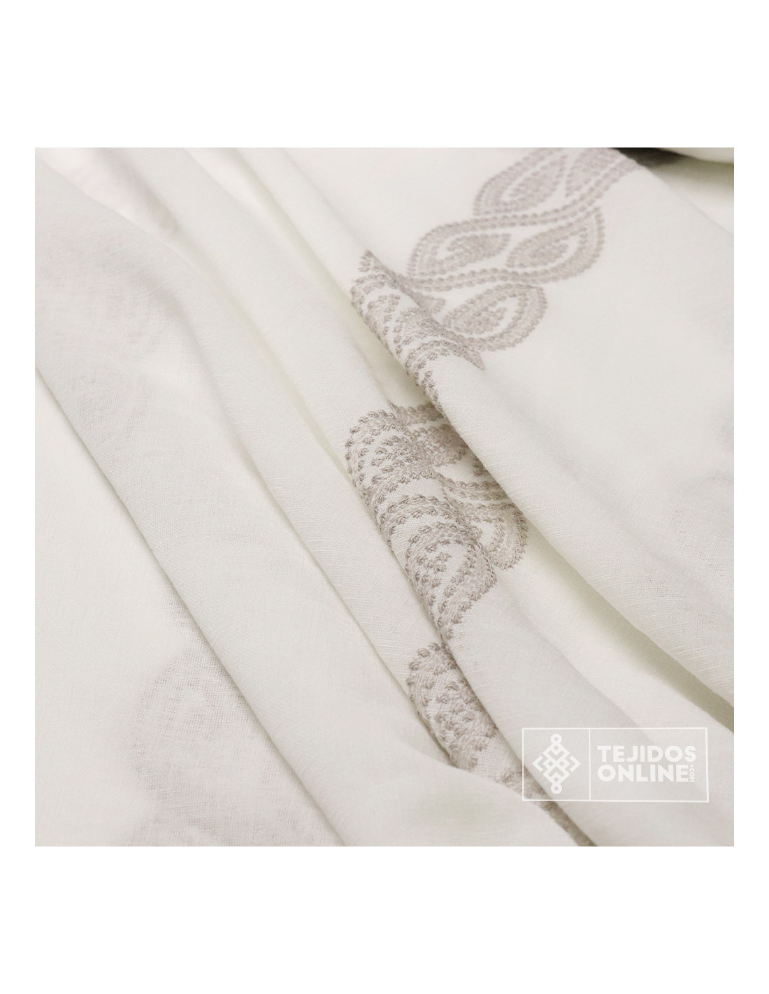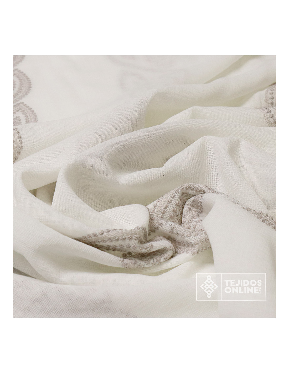 Visillo Blanco Roto Bordado Franja Camel y Gris