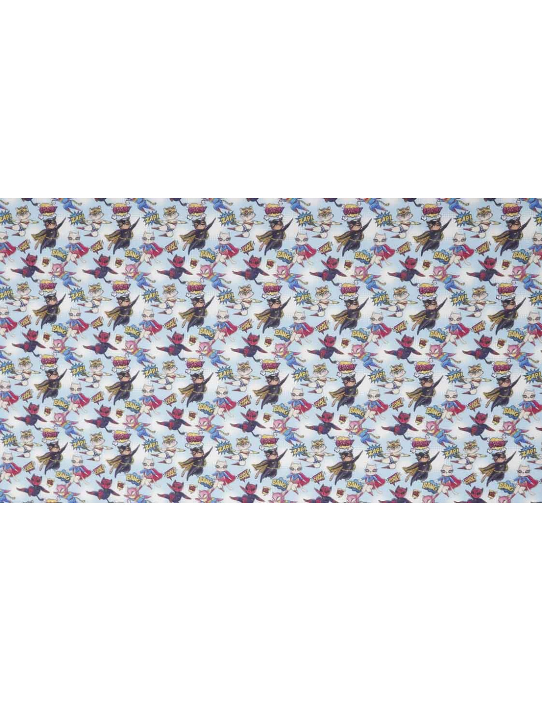 Algodón Super Zap, tejido con cierta finura y suavidad . Tejido con estampados de agradables y divertidos superhéroes de capas sobre un fondo azul. Este tejido, es una tela fácil de coser ya que no ofrece resistencia. Es utilizado para todo tipos de confecciones como; (camisas, vestidos, manualidades, patchwork, etc…).