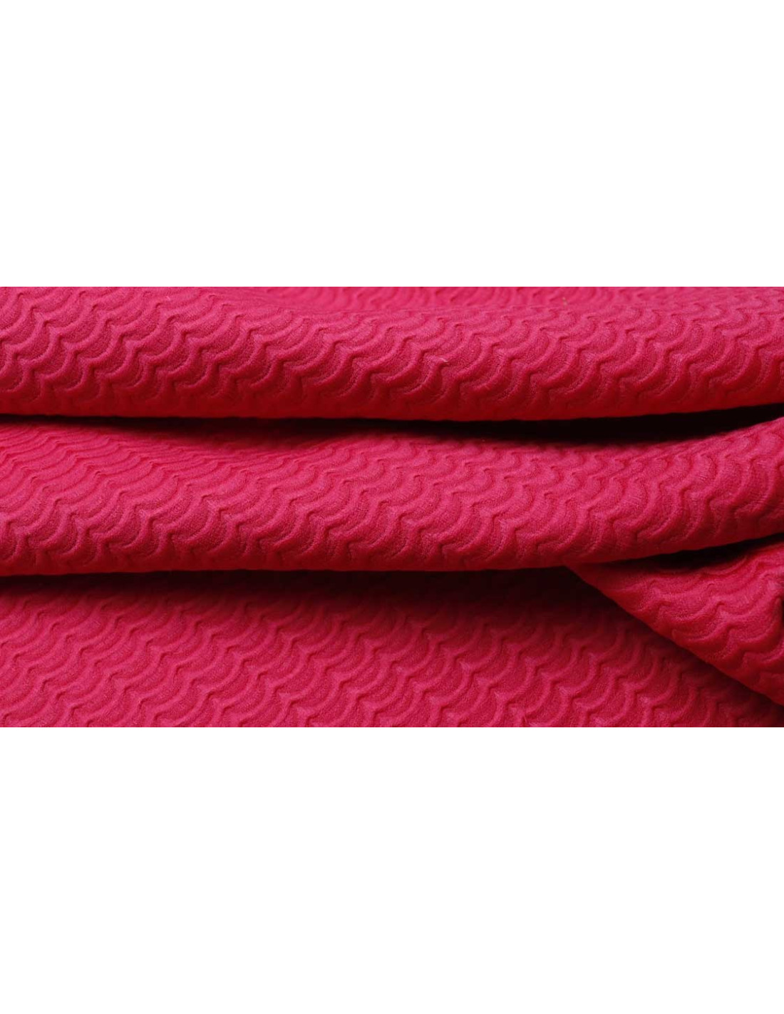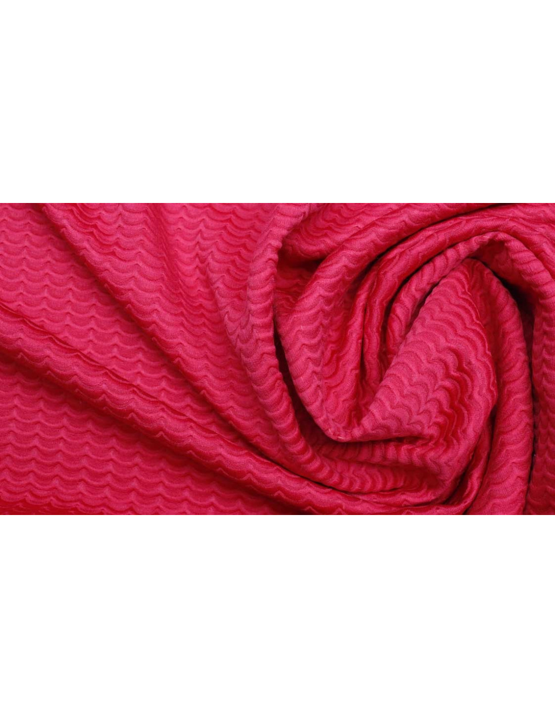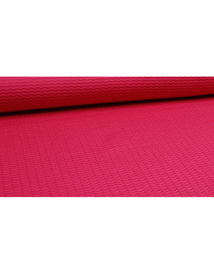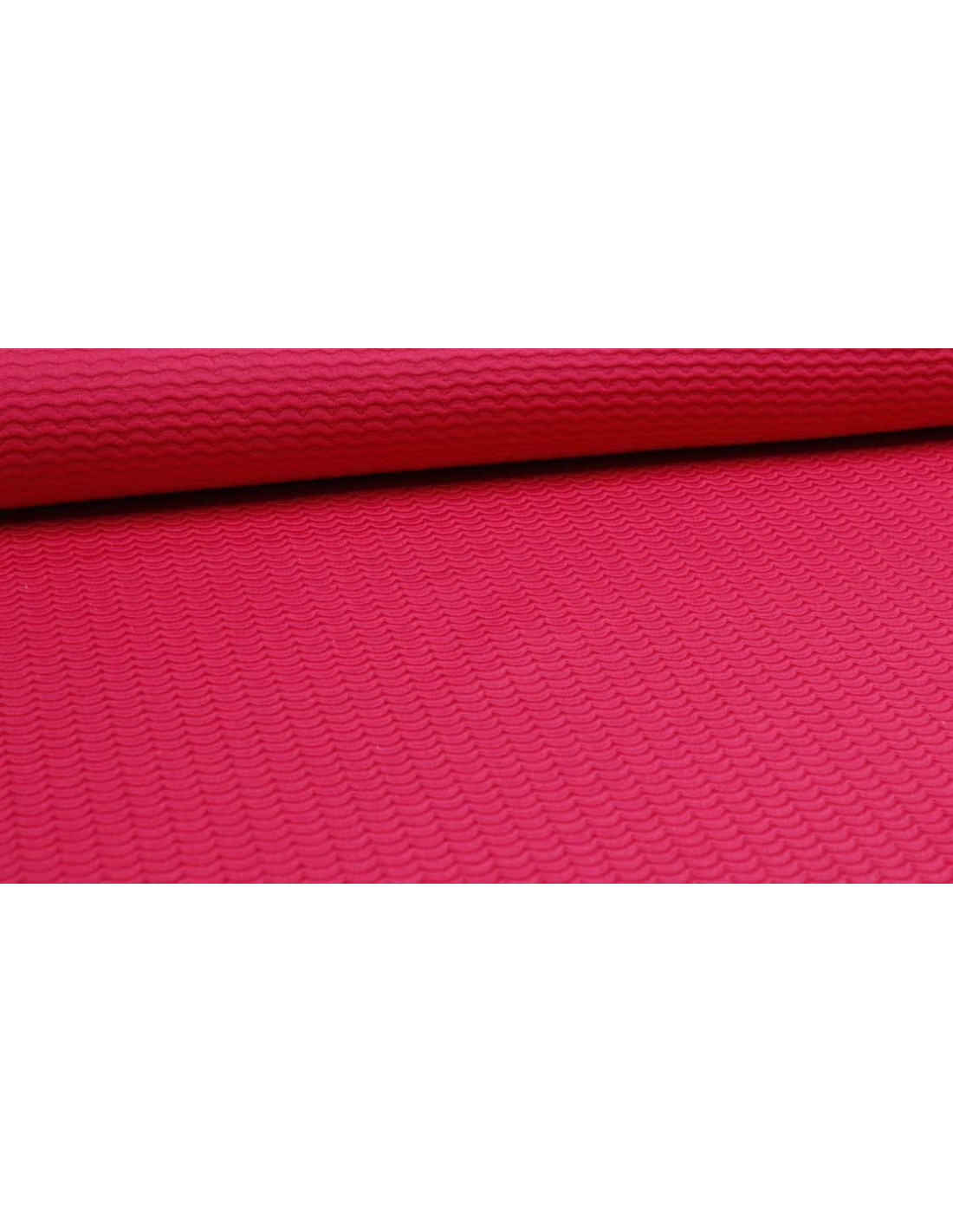 Piqué Ondas Grosella, es un tejido con cuerpo, suave y resistente. Tejido en color grosella formando ondas o olas, en relieve. Tejido utilizado para todo tipos de confecciones como; (faldas, vestidos, manualidades, cortinas, colchas, capotas de carros, etc…).