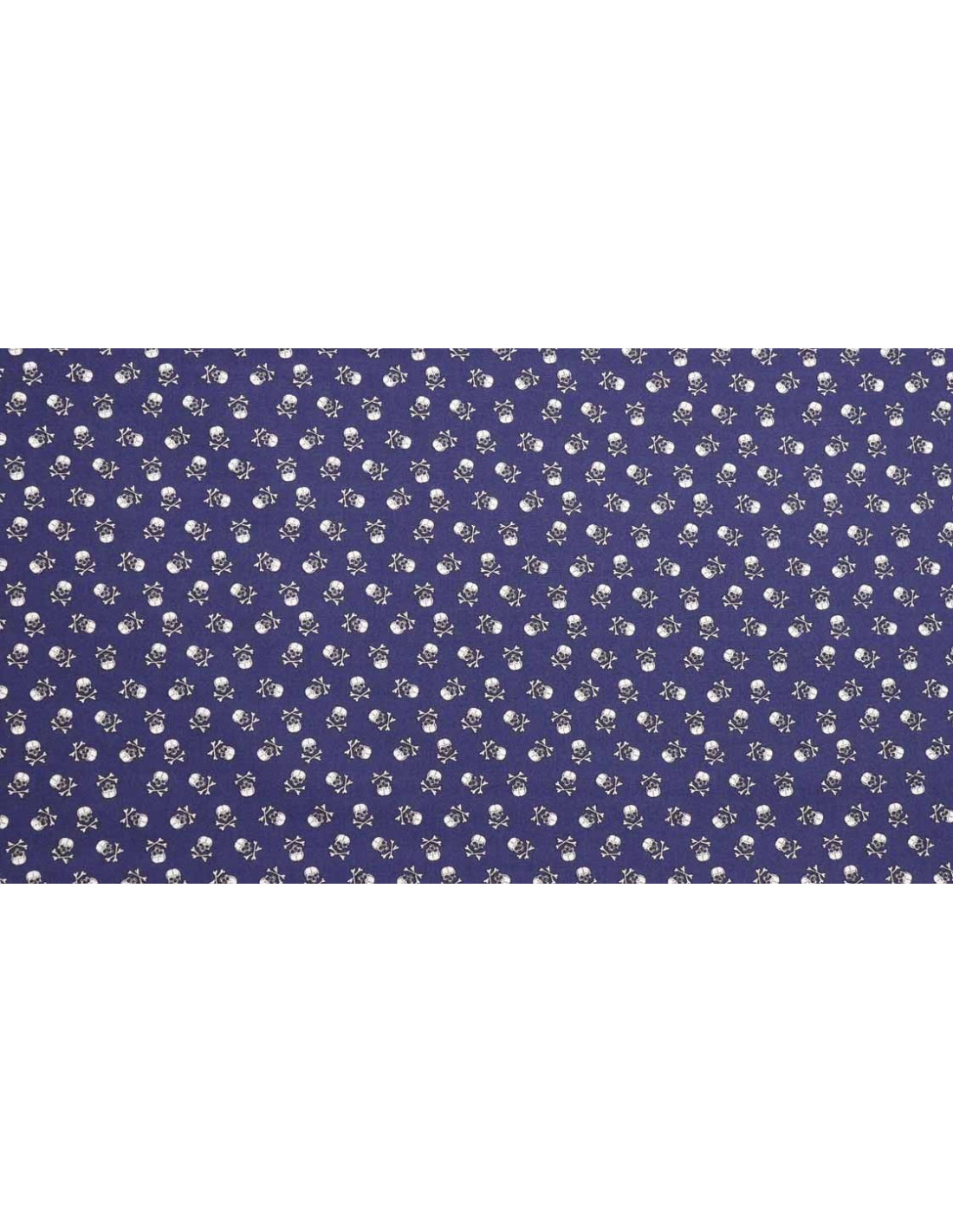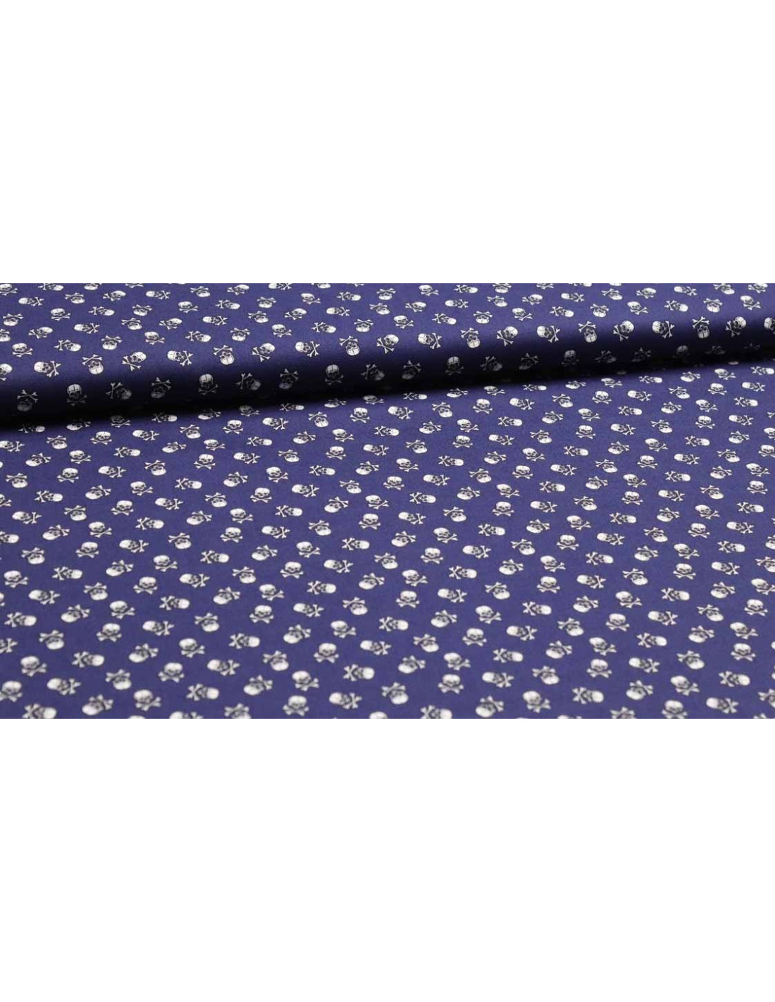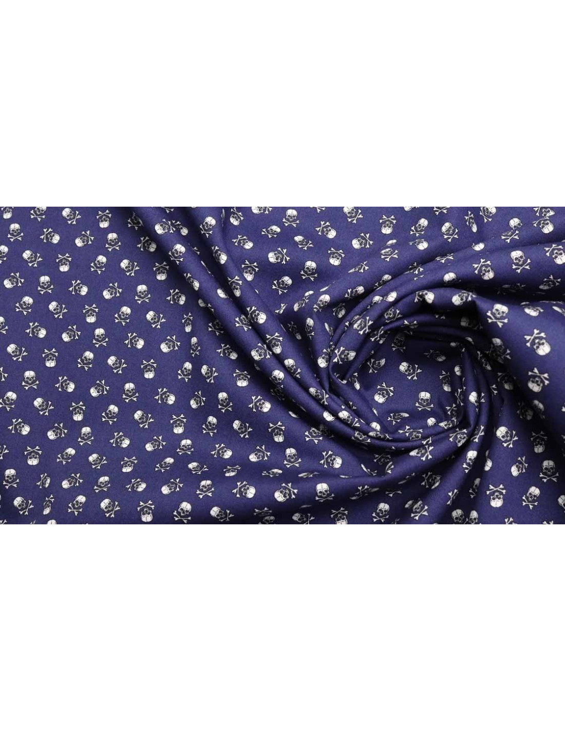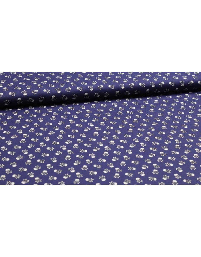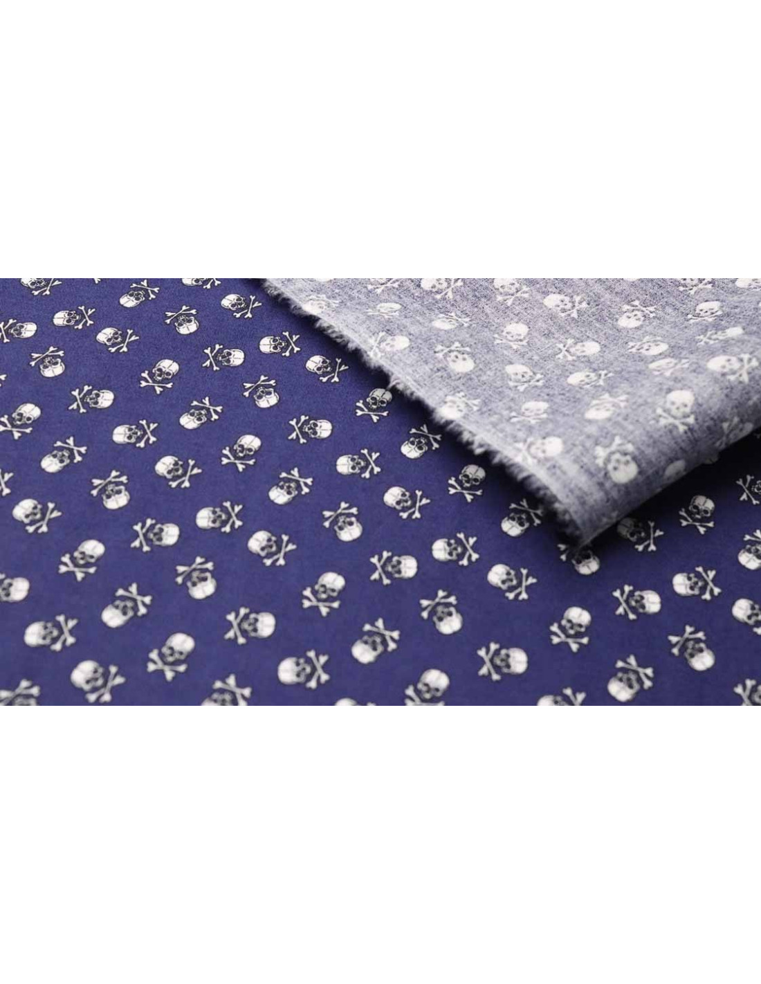 Algodón Marino Skull Mini, tejido de gran suavidad, con cierto cuerpo y caída. Tejido con estampados de los dibujos de calaveras, sobre un fondo color azul marino. Tejido de gran calidad de una composición 100% Algodón. Este tejido, es una tela fácil de coser ya que no ofrece resistencia. Es utilizado para todo tipos de confecciones como; (blusas, camisas, vestidos, manualidades, etc…). Tejido utilizado especialmente para confecciones infantiles.