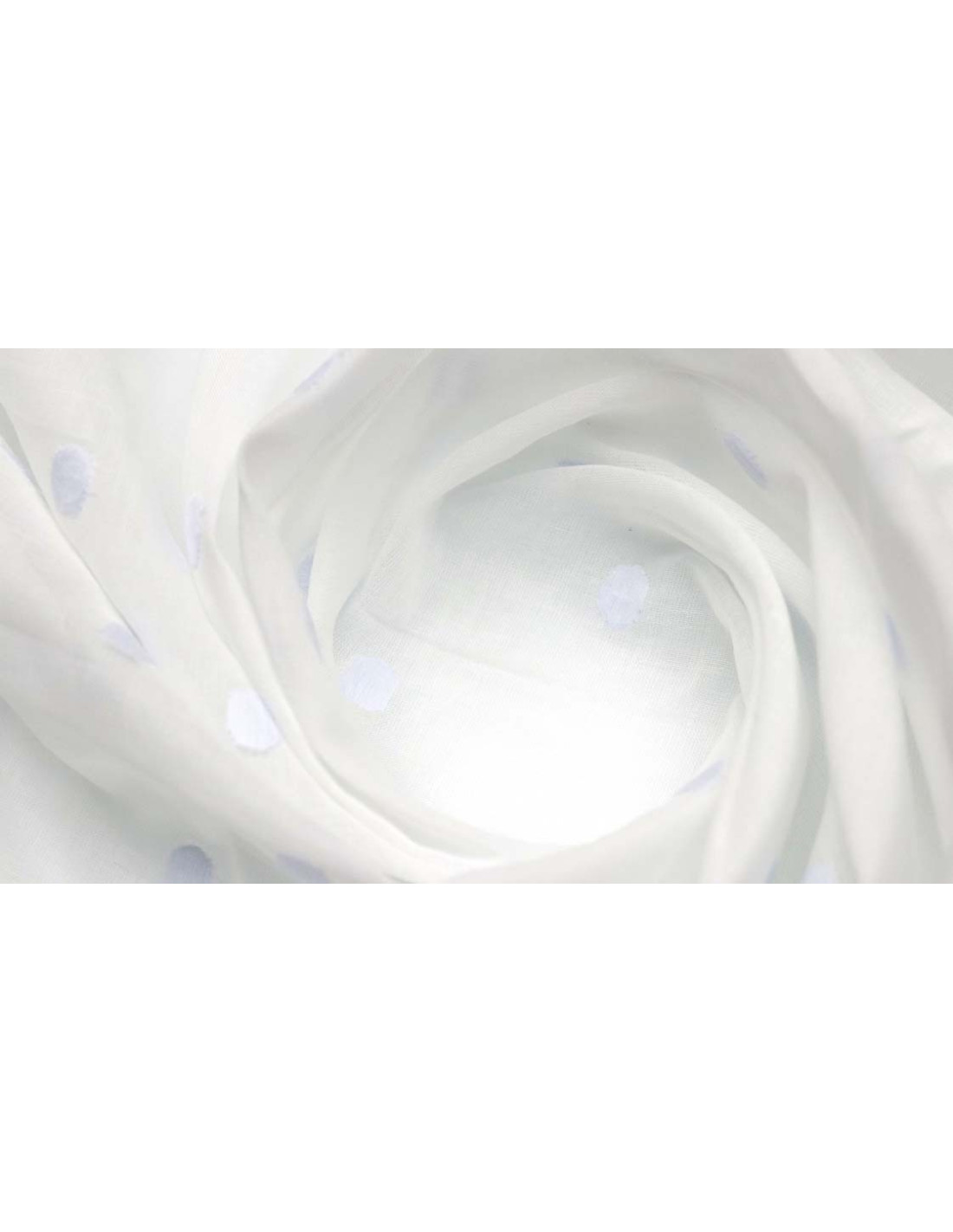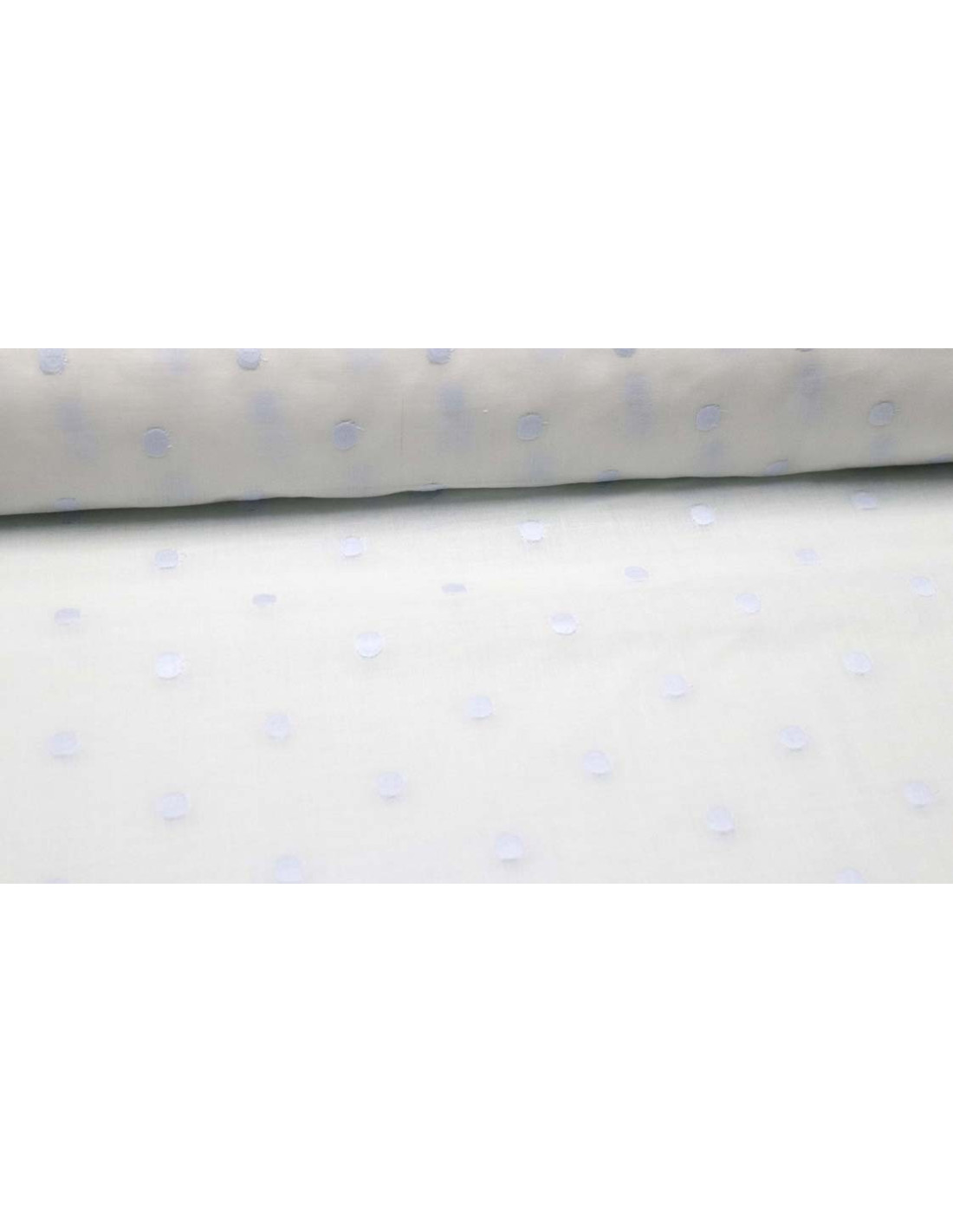 Batista Suiza Organdizada Panete Celeste, tejido de gran suavidad, con cierto cuerpo. Tejido con panetes bordados al tejido, dando un efecto de relieve a su tacto. Este tejido, es una tela fácil de coser ya que no ofrece resistencia. Es utilizado para todo tipos de confecciones como; (blusas, camisas, vestidos, manualidades, etc…). Tejido utilizado especialmente para confecciones infantiles. En galería os mostramos una imagen con el revés del tejido.