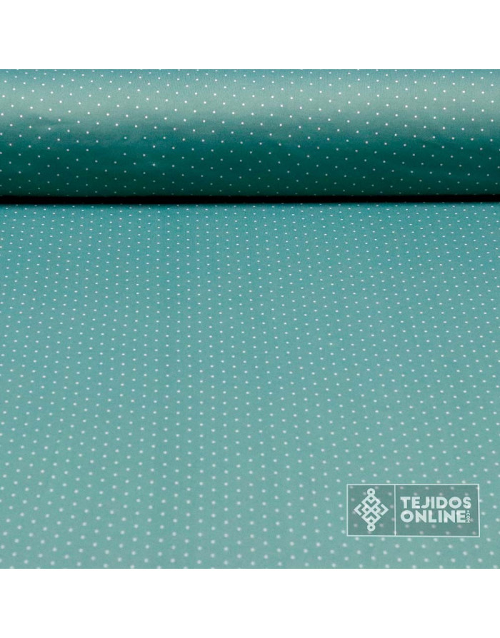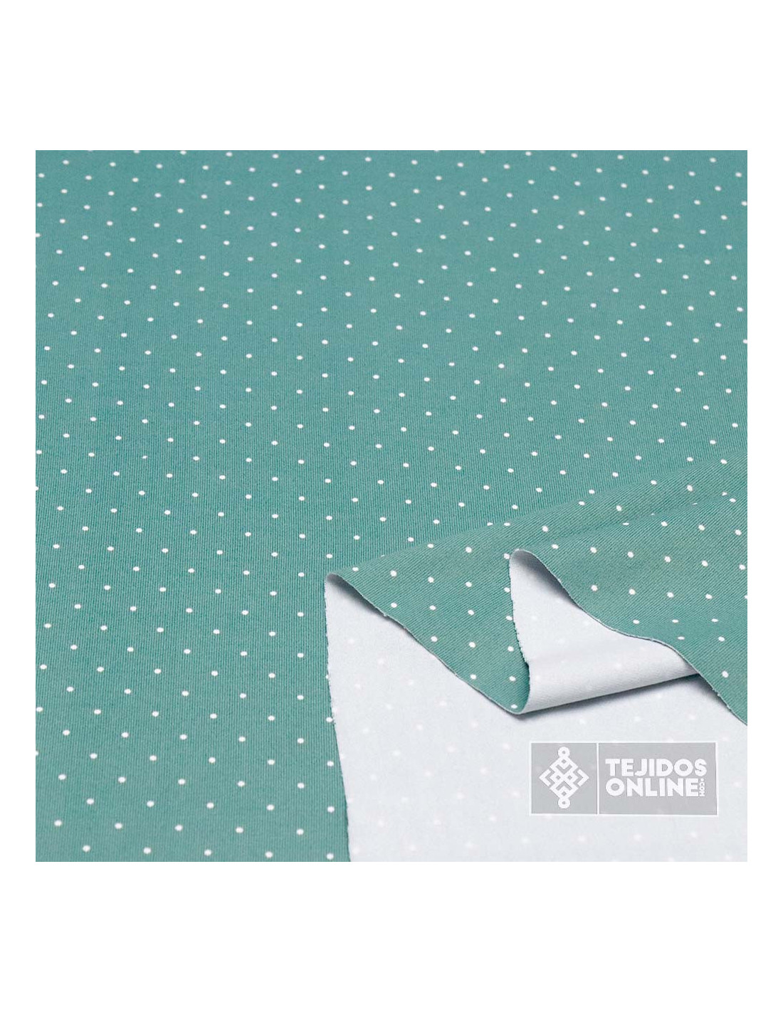 Tela Lycra De Baño Verde Agua Lunar Blanco