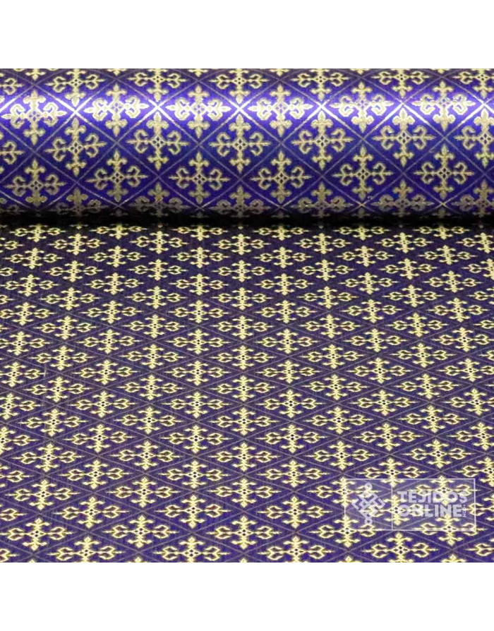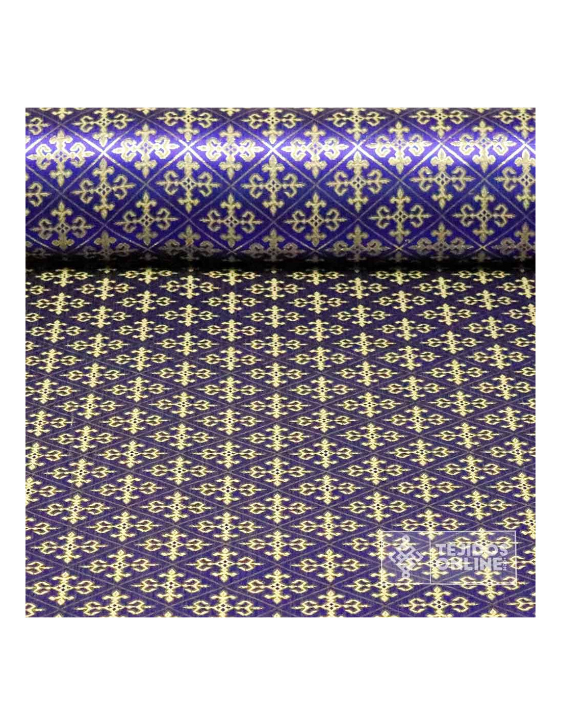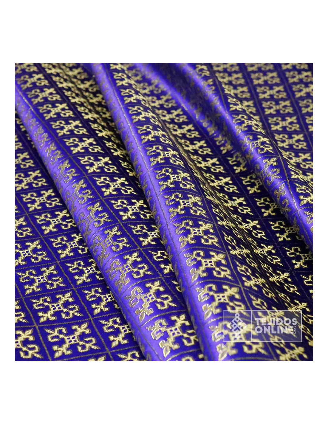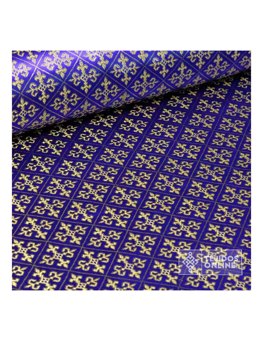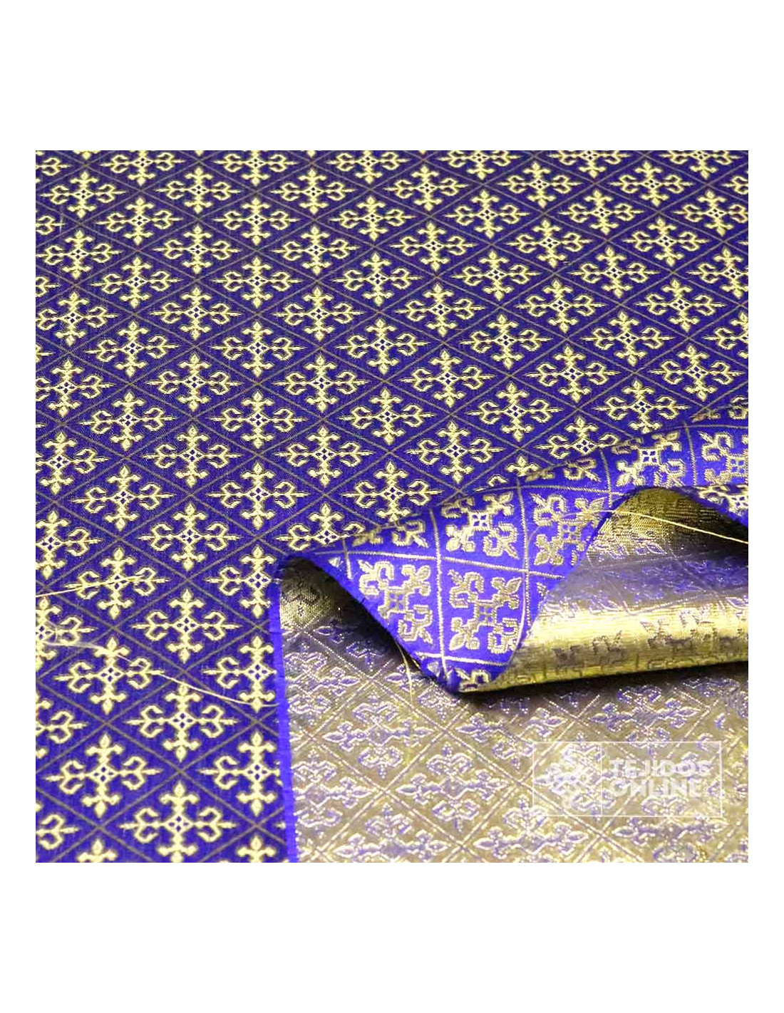 Si estás buscando un tejido elegante, que séa diferente para disfraces y especialmente para vestirte o realizar un traje para Reyes Magos, el Brocado Jacquard Imperial Azulino seguramente sea tu mejor opción.La tela de Jacquard o Brocado, incluso también lo llaman Damasco (aunque es un tejido diferente a veces confunde), se caracteriza por tener diseños en forma de escudos de la época imperial, dando cierto relieve a su tacto que en realidad son bordados en este caso con hilatura dorada en la misma tela. Es un tejido de cierta finura, de poco peso y a su vez con cierto cuerpo.