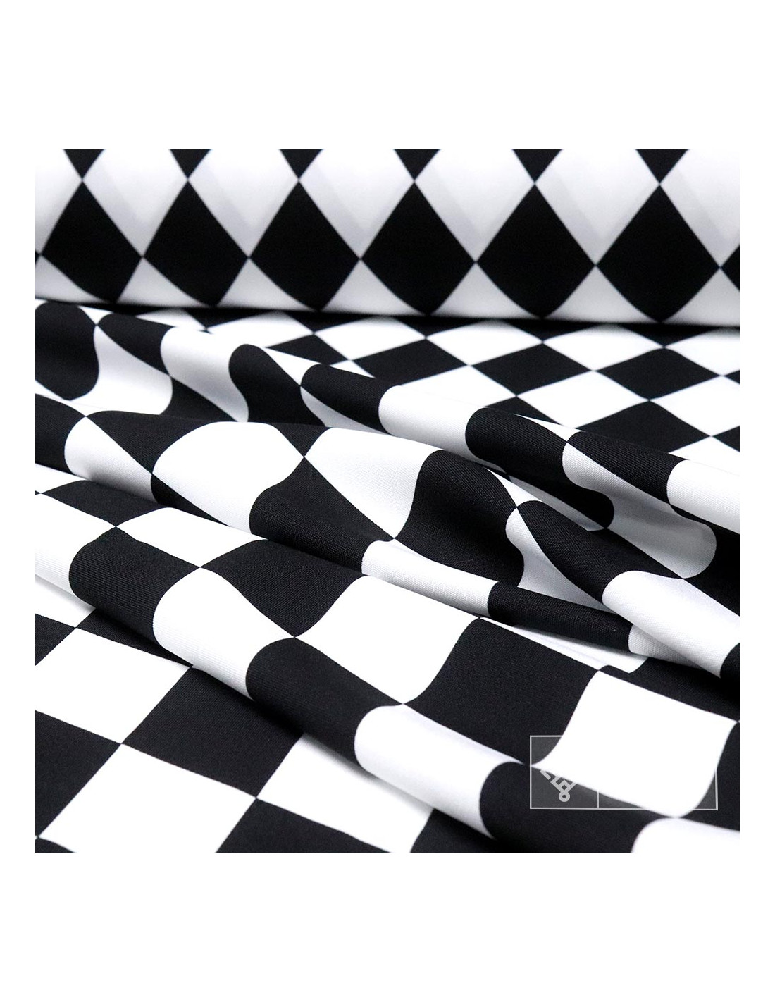 Tela de Stretch Rombos blanco y negro, tejido con caída, vuelo y cuerpo siendo así una tela fácil de coser ya que no ofrece resistencia. Tejido utilizado para todo tipos de confecciones como; (vestidos, camisas, faldas, y todo tipo de proyectos para carnaval). Consejos para su corte; no es necesario seguir la dirección del hilo. Tela que no necesita planchado y no se arruga.