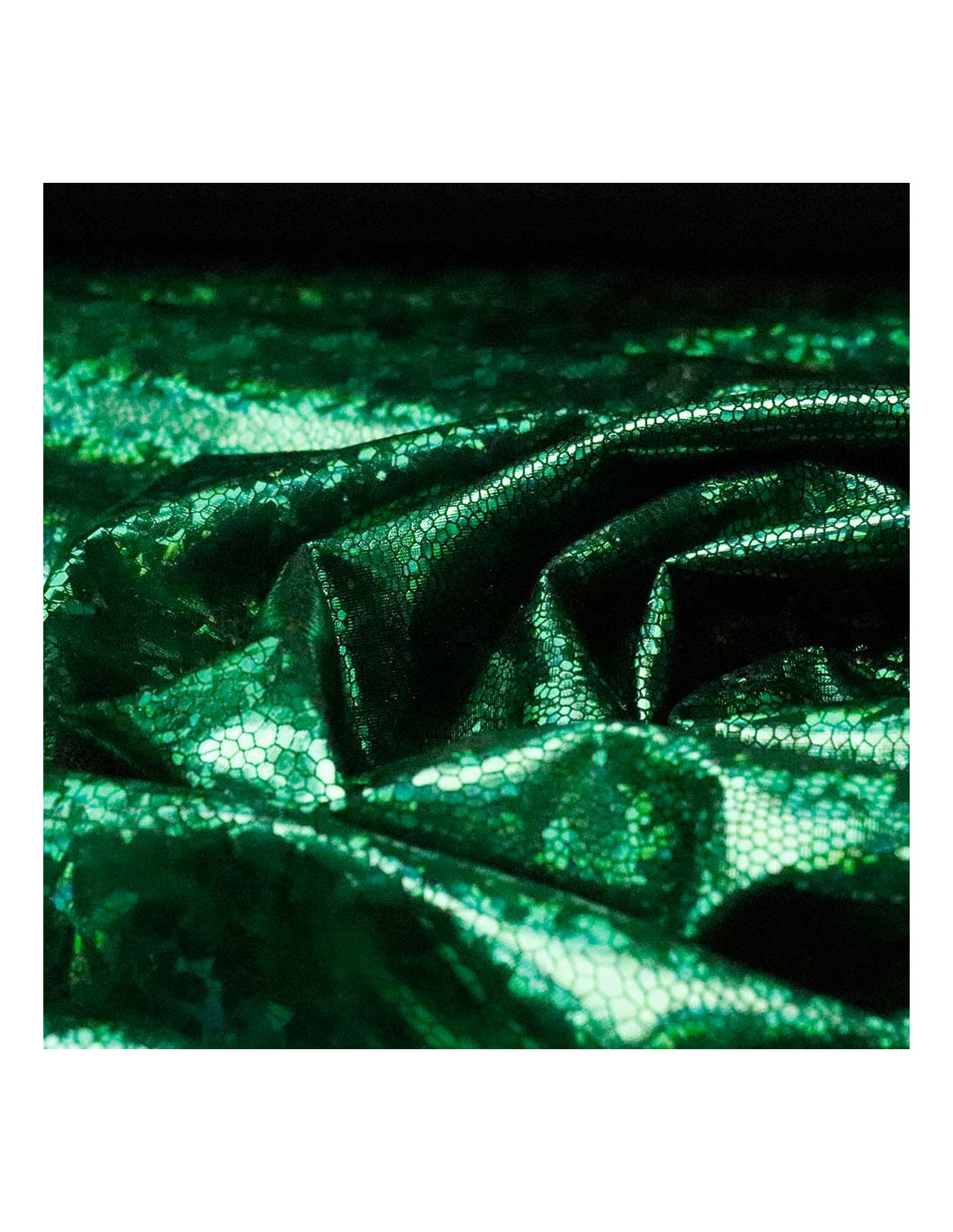 Descubre un punto elástico con acabado brillante que simula escamas de reptil en color verde. Un tejido ligero, con caída y muy cómodo gracias a su 97% poliéster y 3% elastano. Perfecto para dar un toque fantástico y escénico a tus creaciones y disfraces para carnaval. A continuación te contamos sus principales usos, por cierto, es un tejido doble de ancho con 1.50 metros de ancho.
