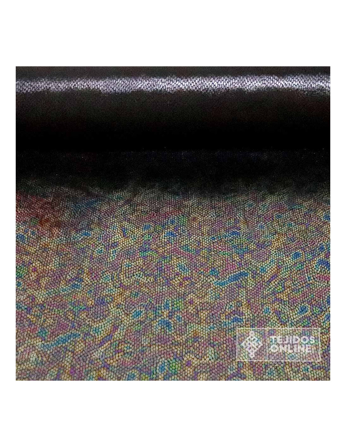 Añade color y personalidad a tus proyectos con esta tela elástica de efecto arcoíris. Ideal para prendas que buscan brillo, comodidad y movimiento.