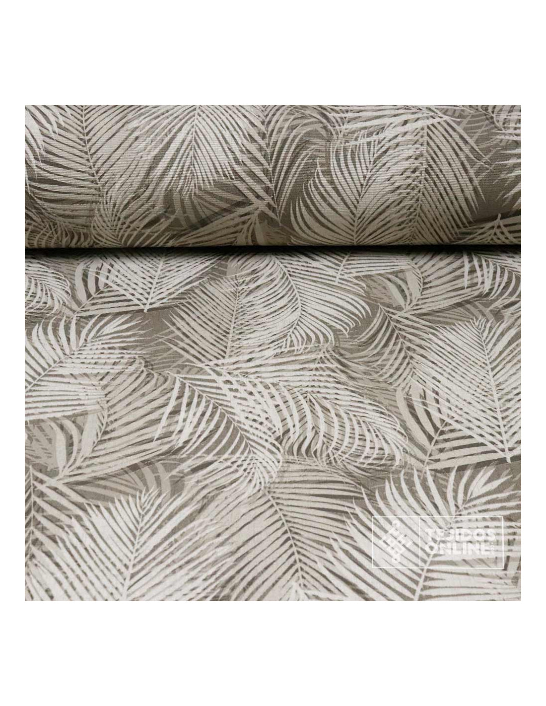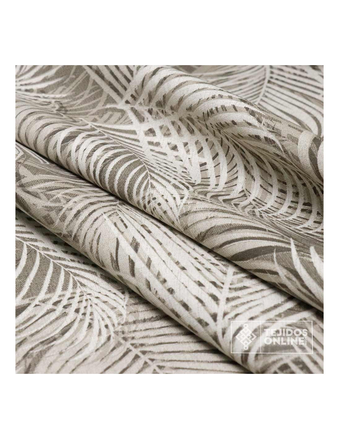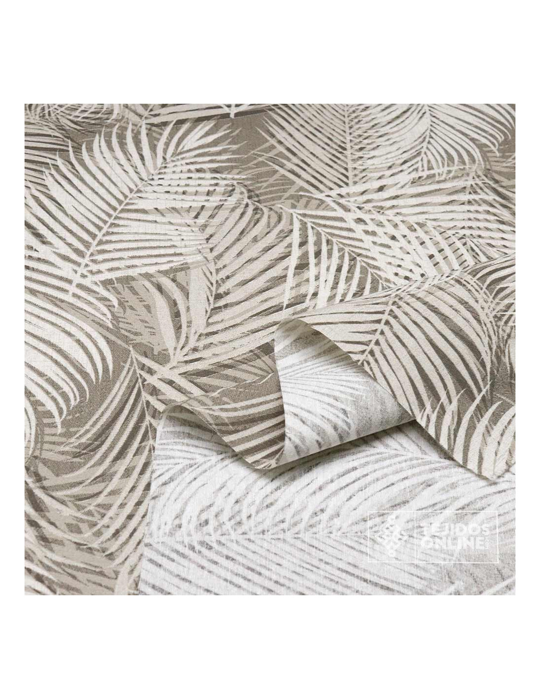 Tela de Loneta Estampado Hojas Tropicales Tonos Tierra