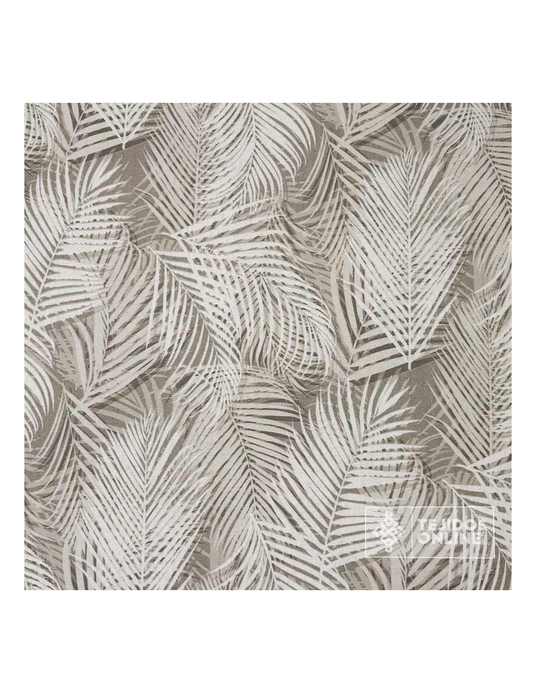 Esta tela de loneta combina resistencia y suavidad, con un diseño tropical protagonizado por grandes hojas en tonos tierra y blanco que crean un efecto natural y relajante. El motivo principal tiene un tamaño aproximado de 30 cm de alto, ideal para confecciones decorativas con un aire exótico y elegante.