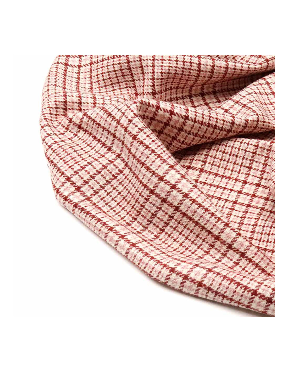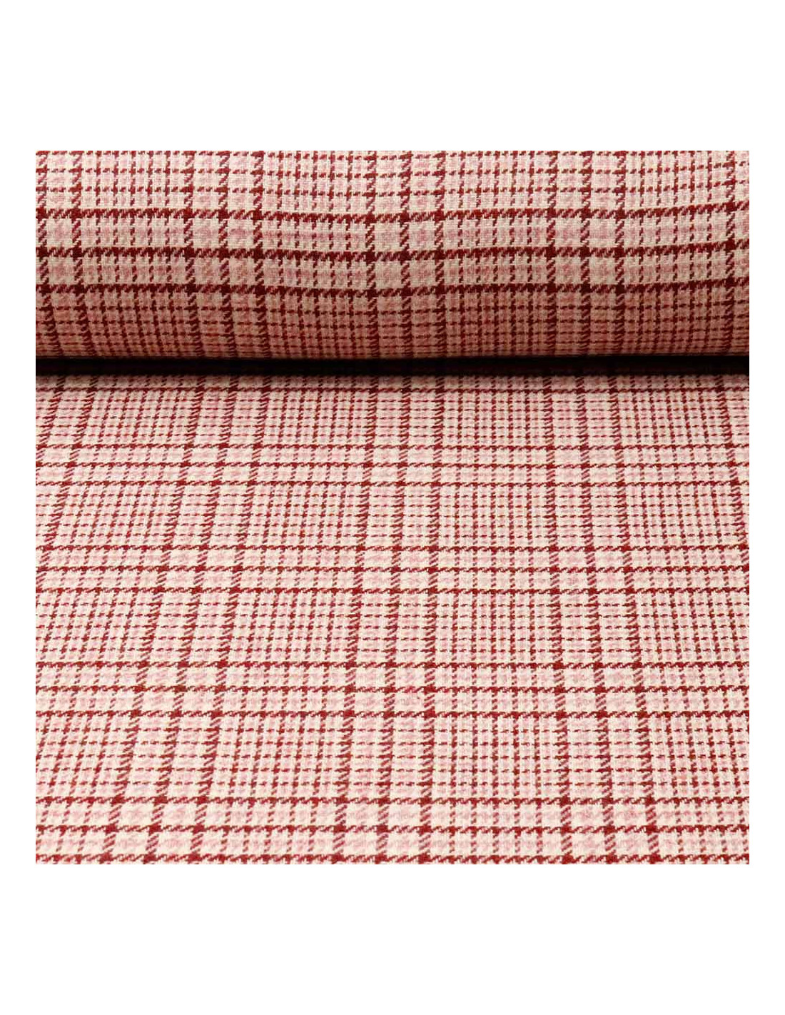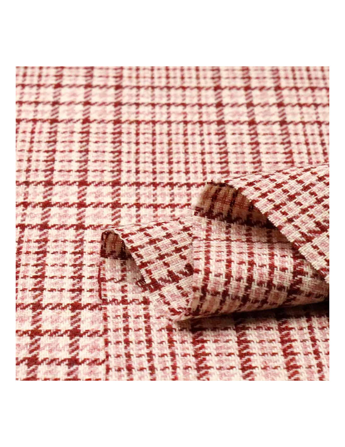 Tela de Lana Príncipe Gales Burdeos Rosa es una tela clásica y elegante con cierta cuerpo de tacto agradable y suave. Tejido para crear estructura a la prendas siendo así un lana de en formas del típico dibujo de príncipe de gales predominando el color burdeos y rosa. Este tejido, es ideal para todo tipo de confecciones como: chaquetas, faldas, pantalones, abrigos, etc…