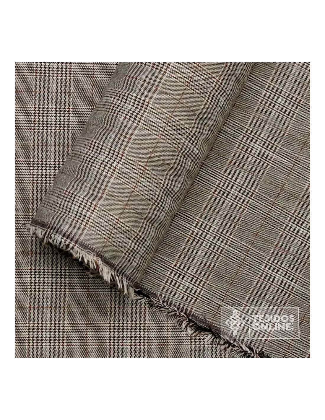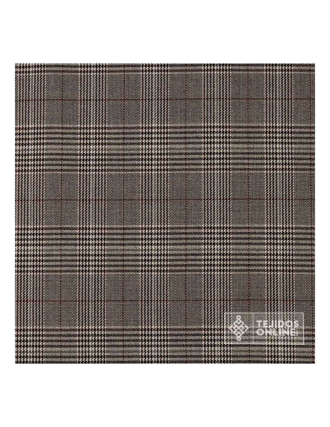 Nuestra Tela Principe de Gales Tonos Marrones es una tela compuesta con viscosa de hay su suavidad, tacto agradable y una sensación fresca de esta marivollosa tela asargada. Esta tela de gran calidad es un tejido de cierto grosor, donde se destaca por su patrón de rayas al estilo gales donde destaca la tonalidad de fina rayas de color marrón.