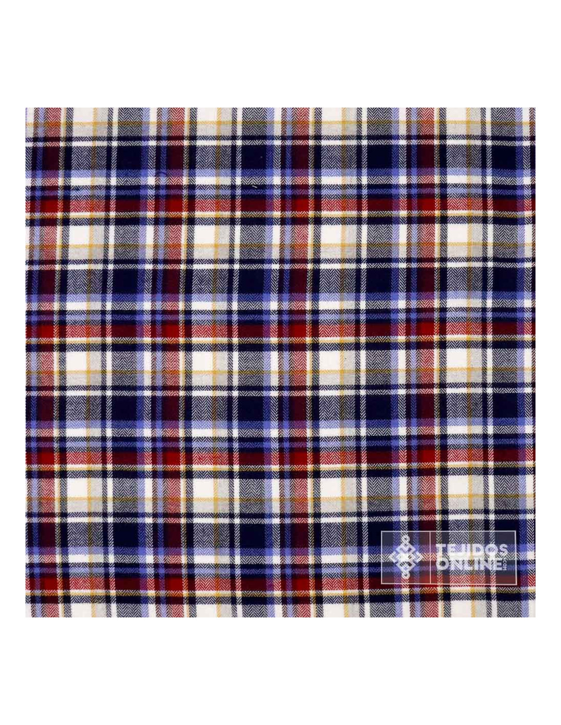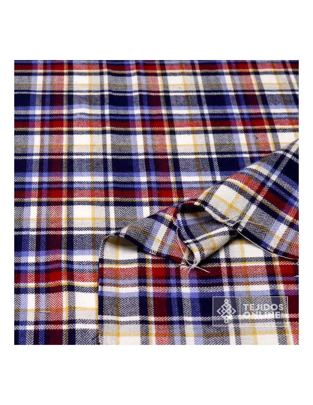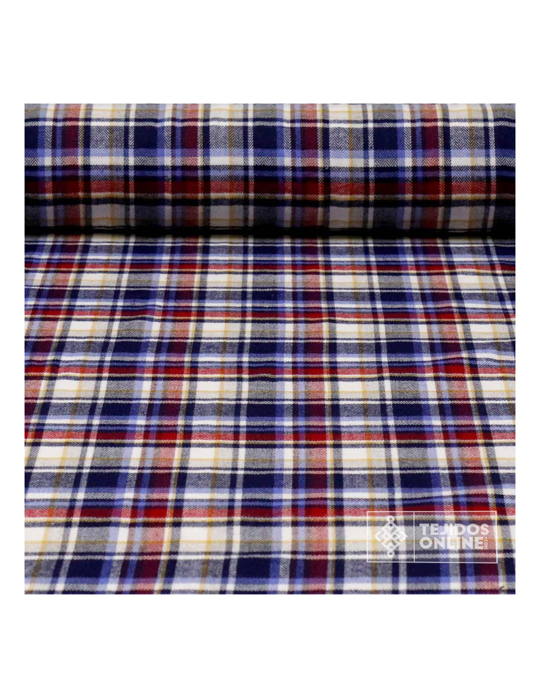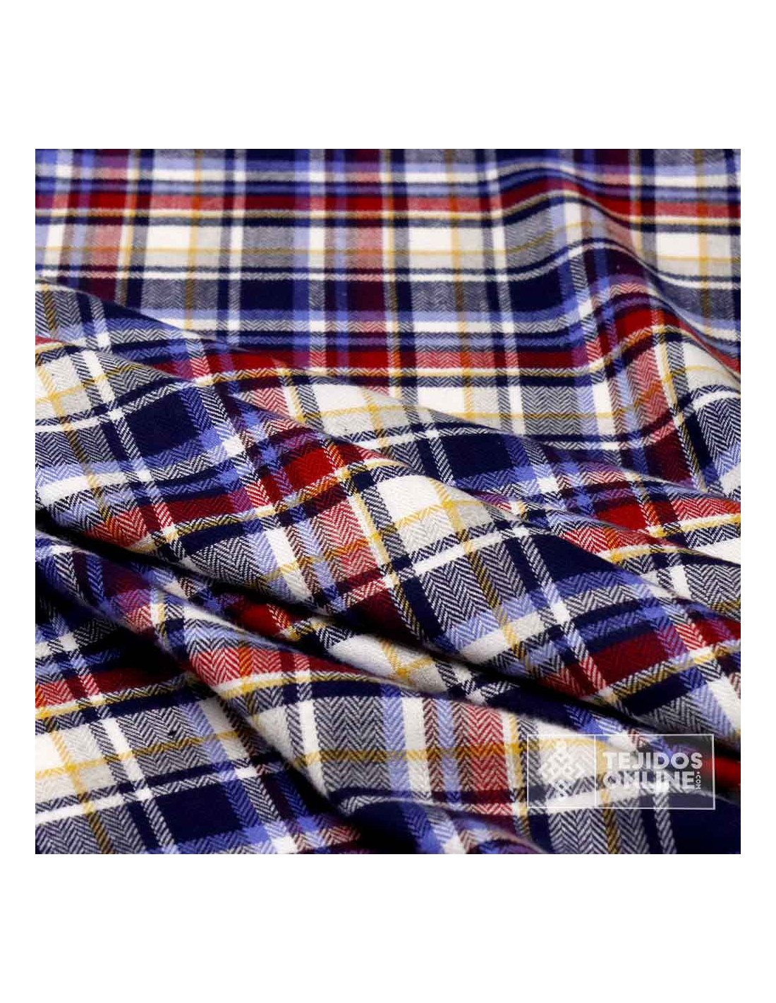 Tela de Franela compuesta en Algodón con Cuadros Rojos y azul marino. Esta tela se caracteriza por ser una tela clásica y elegante, de cierta grosura, cierto cuerpo y poco peso. Tejido ideal para crear estructura a la prendas caracterizado por su suavidad, calidad y elegancia. Este tejido, es ideal para todo tipo de confecciones como: abrigos, tres cuartos, chaquetas, faldas, etc… y todo proyecto de moda.