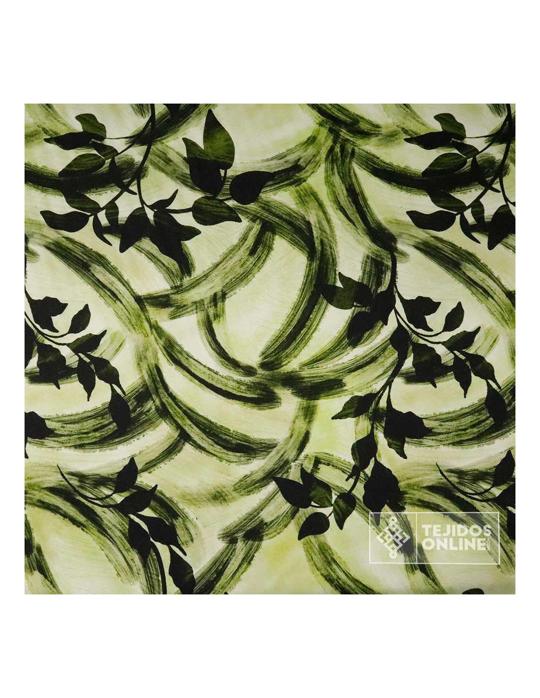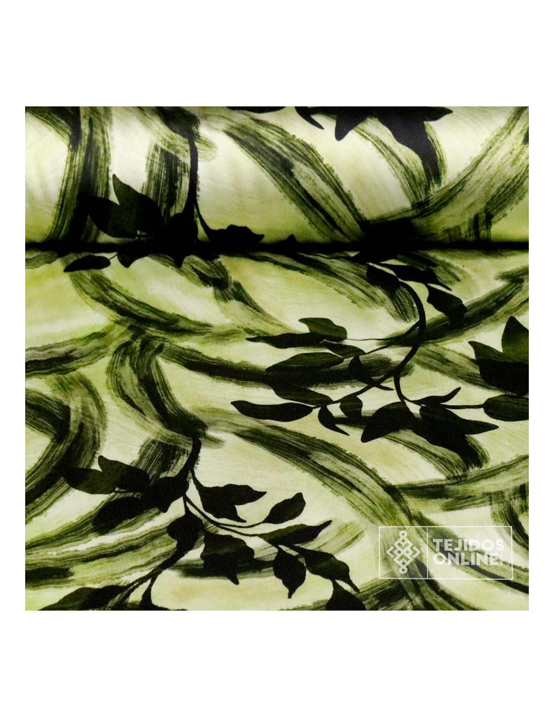 Crep Seda Raso Hojas Verde y Camel | Tejido De Vestir