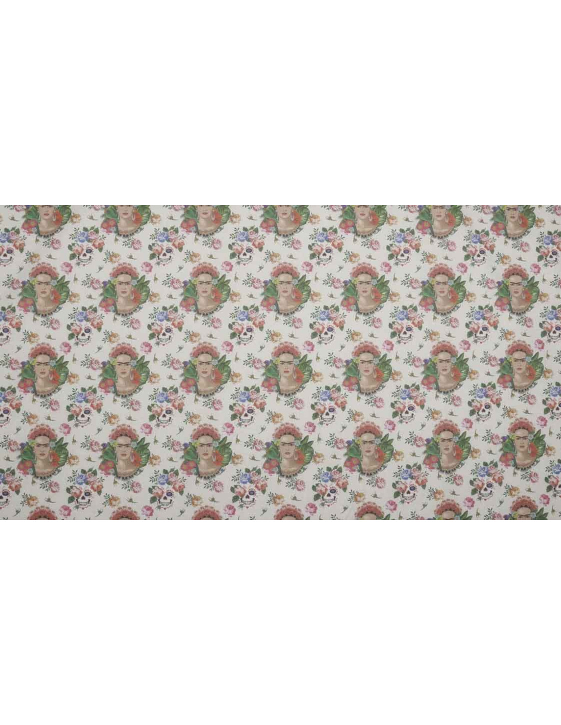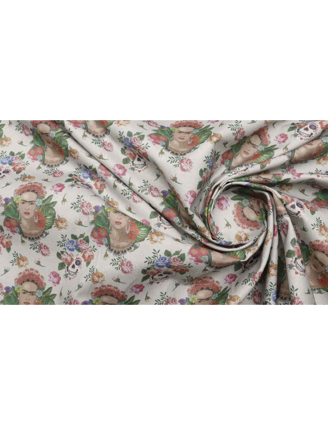 Algodón Frida Kahlo Gris, tejido con cierta finura y suavidad . Tejido con estampados de la conocida revolucionaria frida kahlo, sobre un fondo gris. Este tejido, es una tela fácil de coser ya que no ofrece resistencia. Es utilizado para todo tipos de confecciones como; ( camisas, vestidos, manualidades, patchwork, etc…).