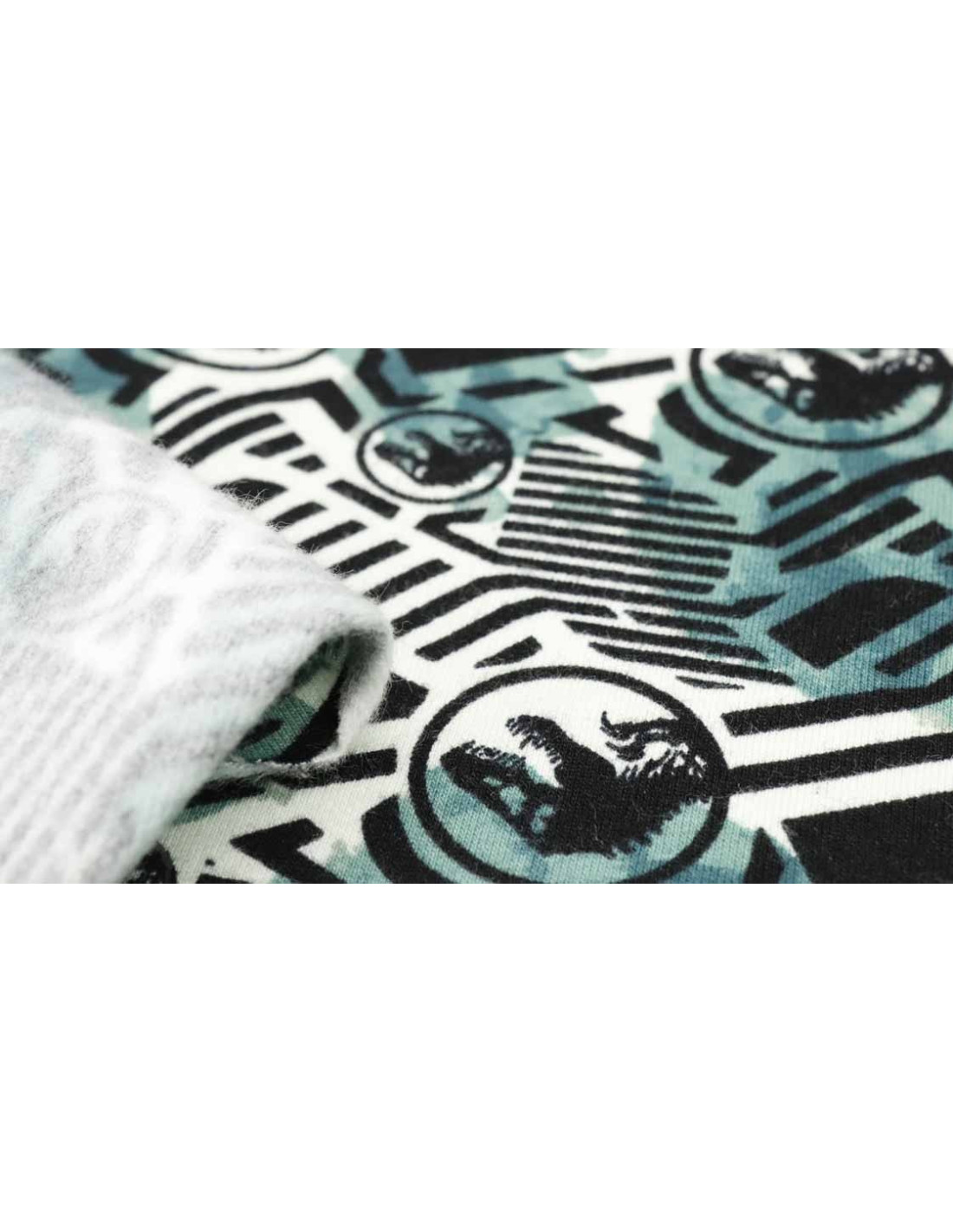 Punto Sudadera Jurassic World, es una tela de punto elástica y elegante, de cierta grosura, caída y de primera calidad. Tejido con el cuerpo justo para crear estructura a la prendas y caracterizado por su suavidad. Tejido con estampaciones de los conocida película de jurassic world, en su revés forrado de un polar fino suave y calidad. En galería os mostramos una imagen con el derecho y revés del tejido, para que podáis apreciar ambas partes.