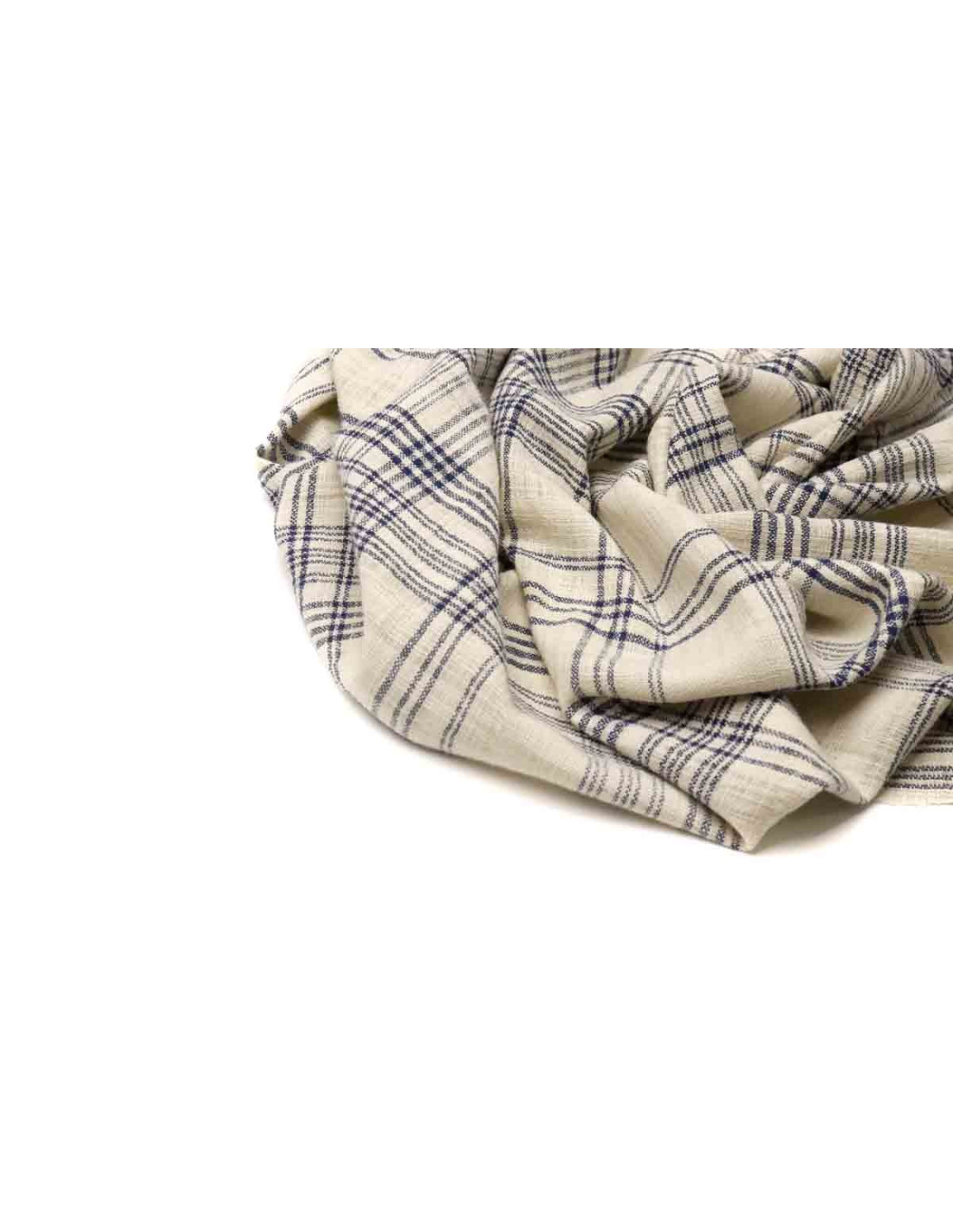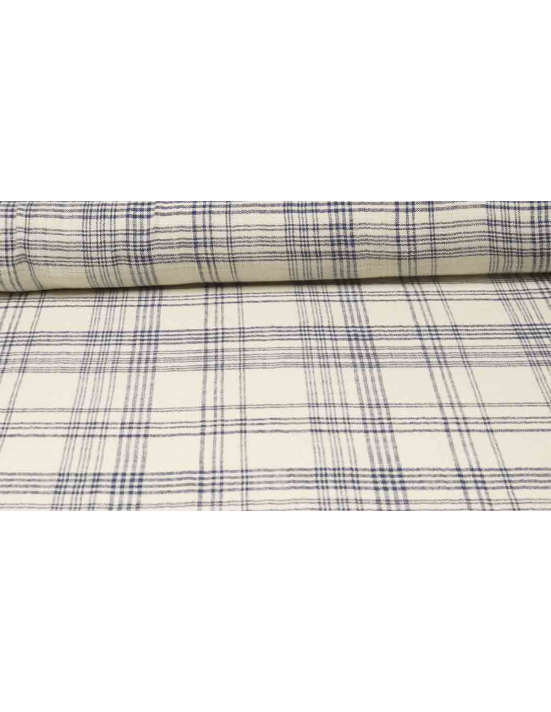 Tela Rustica Cuadros, es un tejido de cierta finura, suavidad, con cierto cuerpo y de textura agradable. Tejido parecido a un tejido de alpaca con estampaciones de líneas azul marino o negras, formando cuadros sobre un fondo crema. Tela que no ofrece resistencia al corte, tejido utilizado principalmente para confecciones como; (faldas, vestidos, pantalones, chaquetas, etc…). En galerías os mostramos una imagen para que podáis apreciar el revés de este tejido.