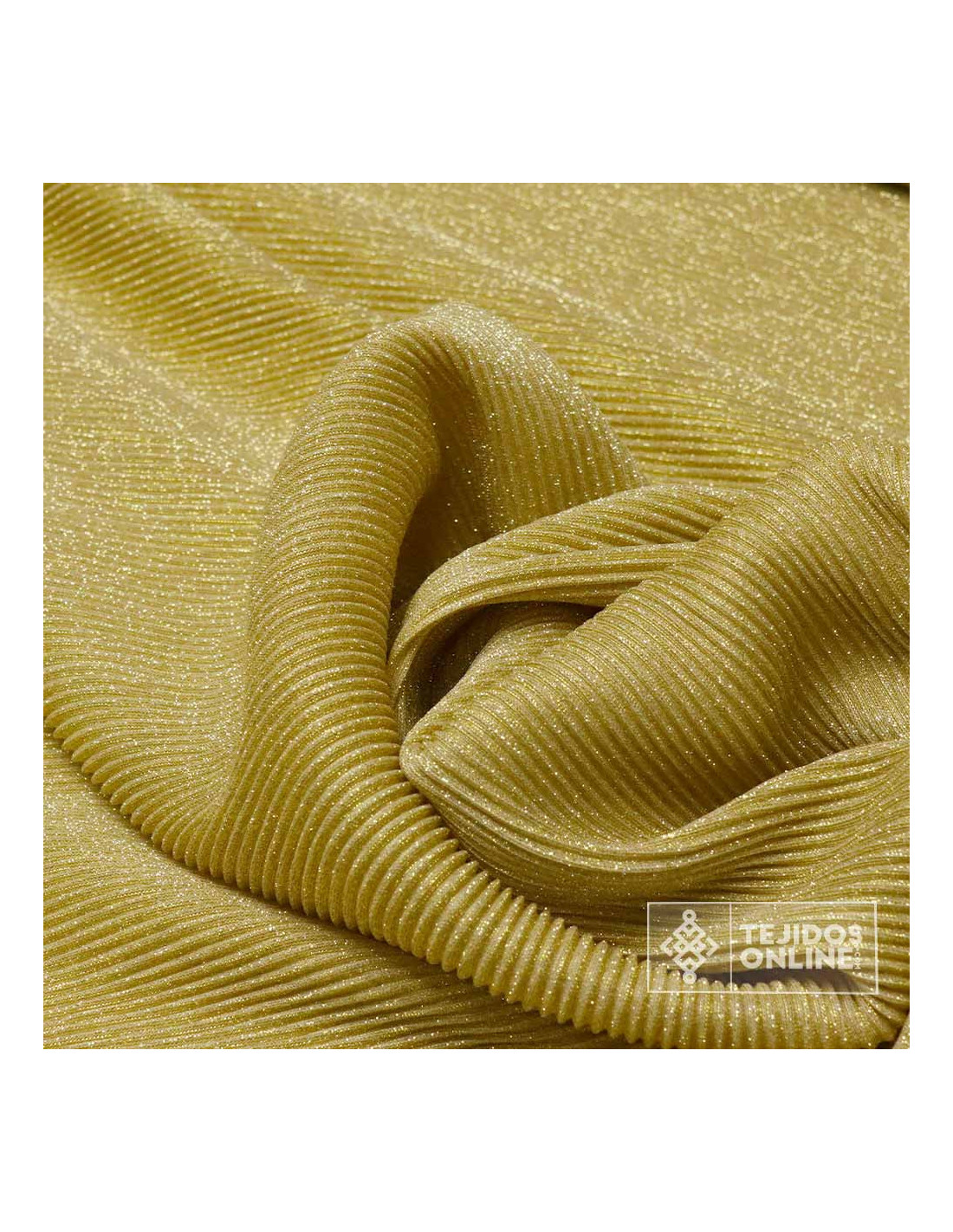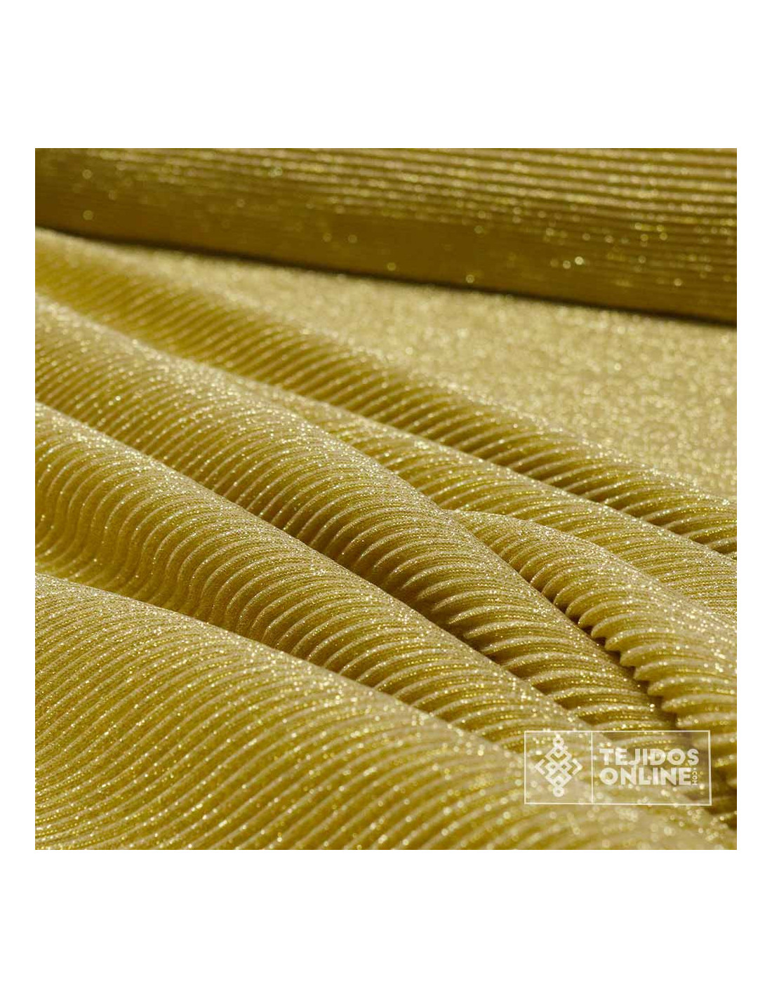 La Tela Plisada Dorada es un tejido con cuerpo, cierta grosura, de gran suavidad y cierta elasticidad para ambos lados ya que su base del tejido es una tela de punto siendo ideal para dar forma a tus proyectos con excelentes resultados. Este tejido tiene un plisado en color dorado acompañado con brillo siendo ideal para proyectos cofrades de moda y confección.