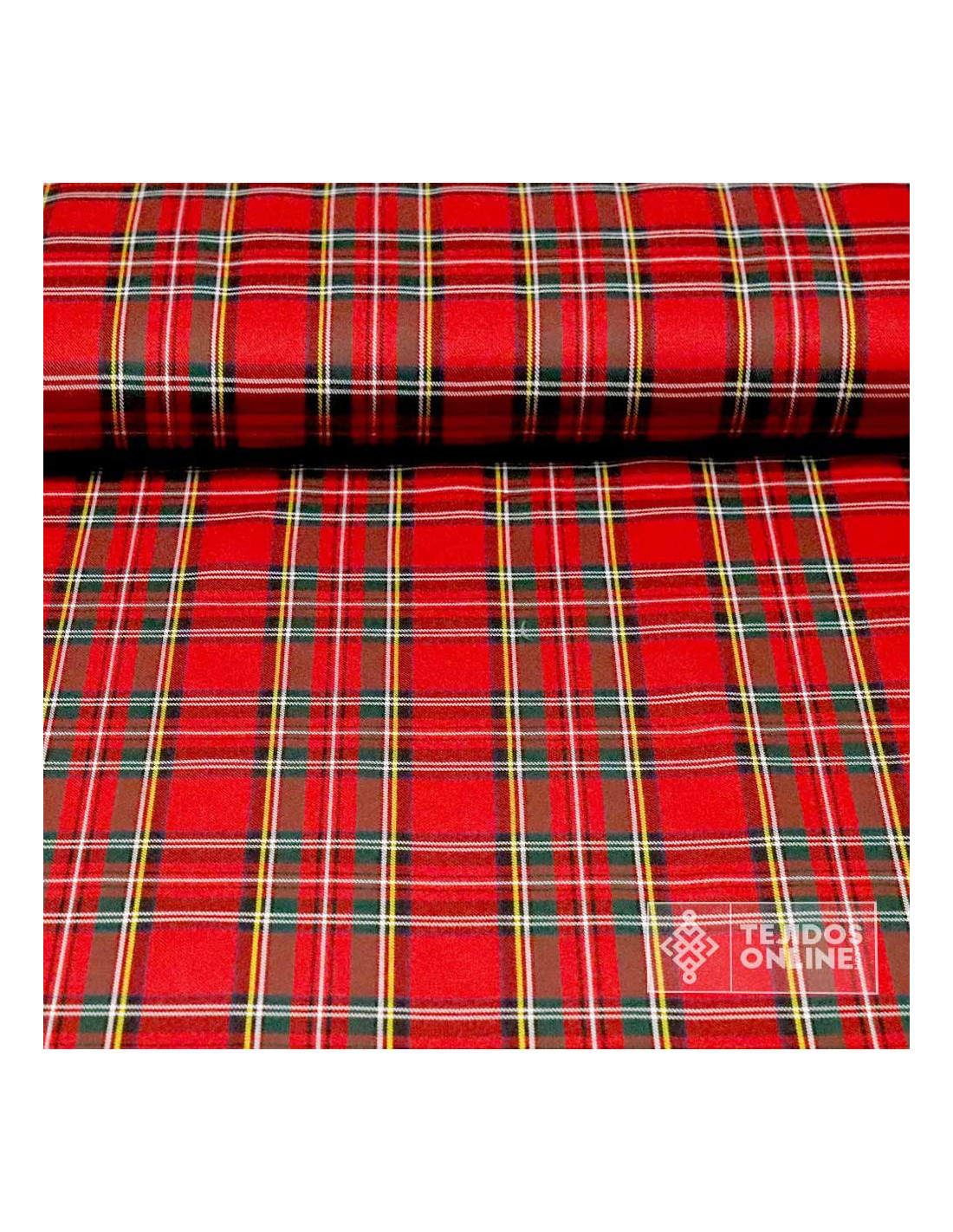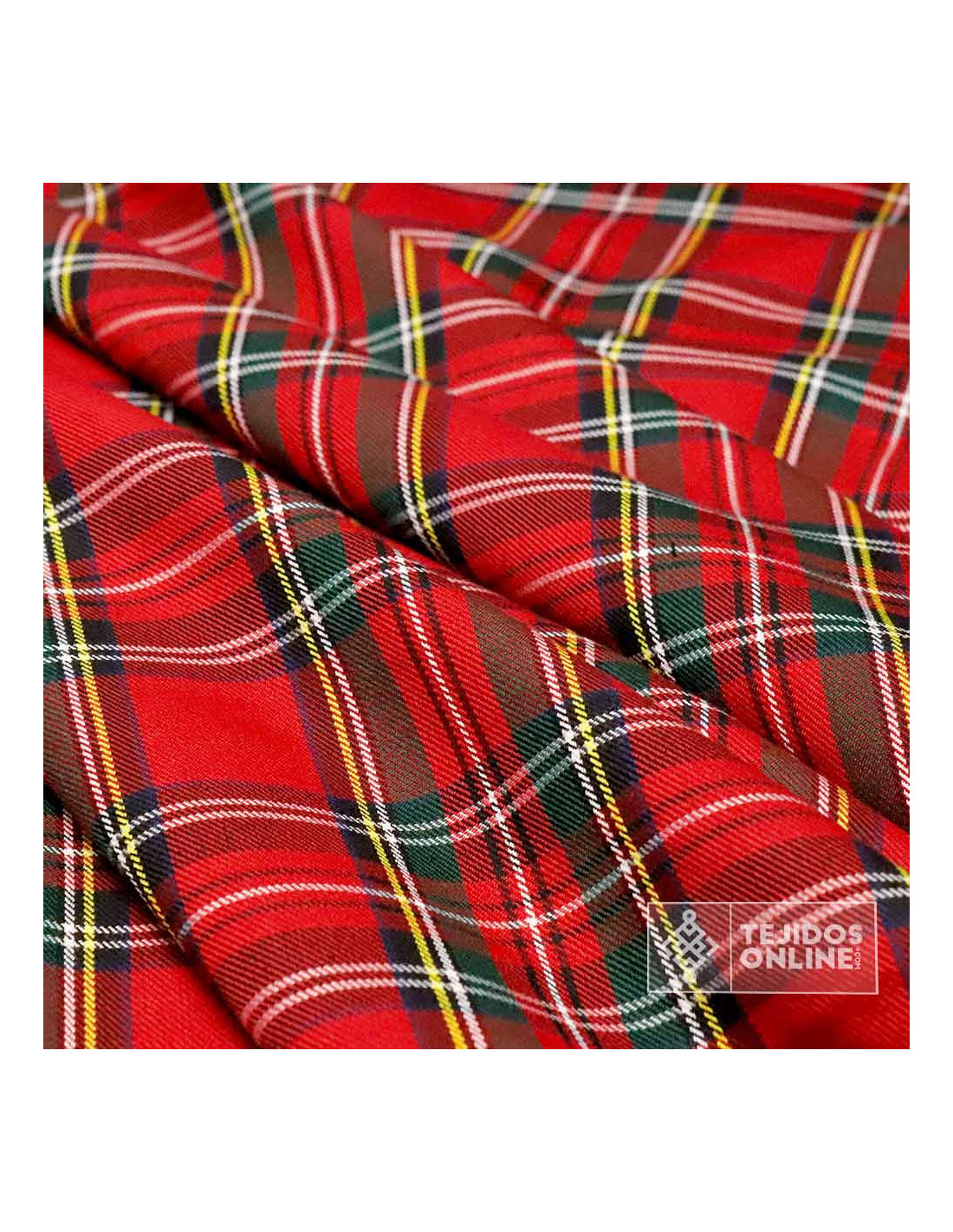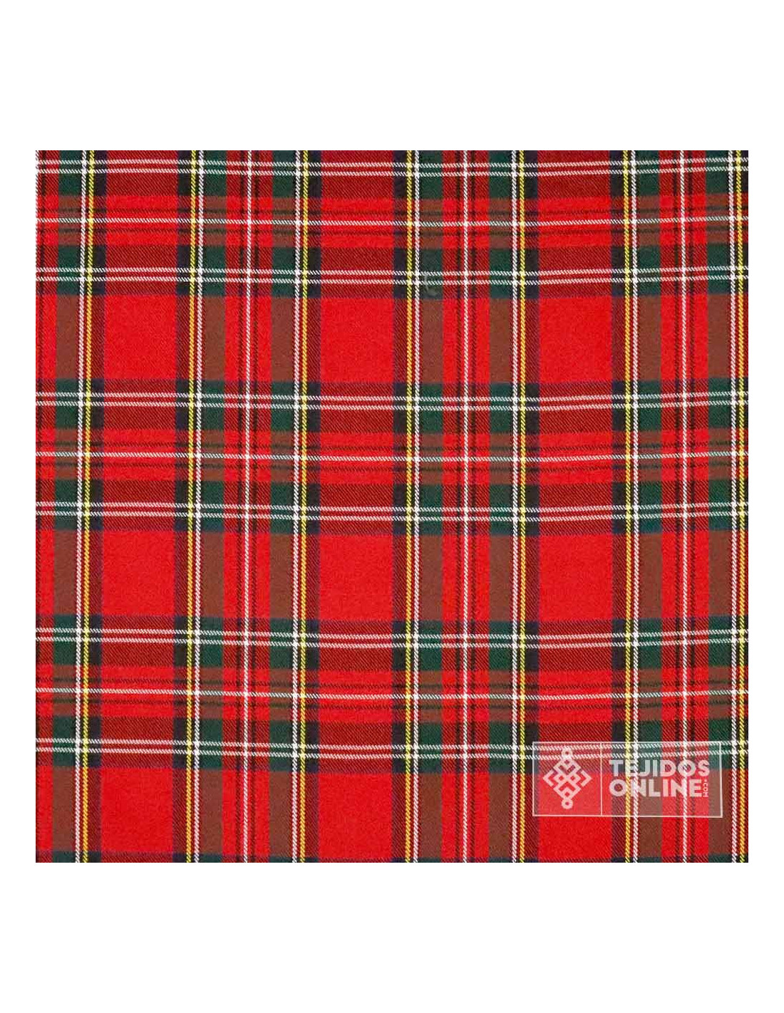 La Tela Cuadro Escocés Rojo es un tejido que se caracteriza por su cierta grosura, su suavidad al tacto y al contacto con la piel de sensación asargada, por ser un tejido con cierto cuerpo peso y sin elasticidad. Es un tejido donde se caracteriza por su combinados de colores en tonos rojos y verde botella acompañados de finas rayas blancas y amarillas creando un estampado conocido como el cuadro escocés espectacular.