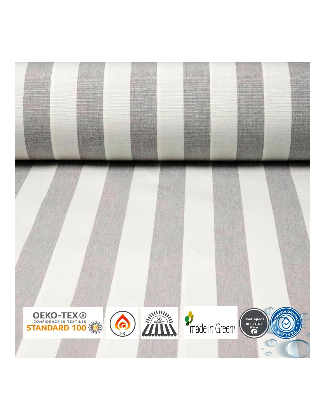 Toldo Rayas Gris Teflón | Telas para Toldos Resistente al Agua.