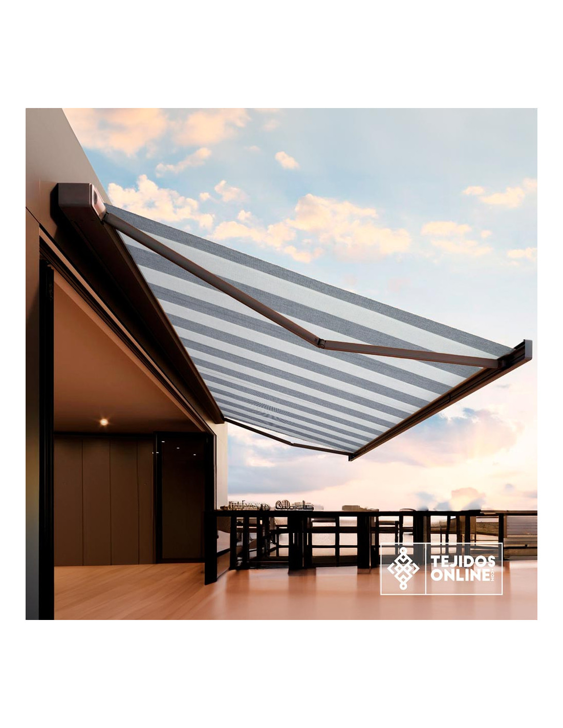 Toldo Rayas Gris Blanca Teflón