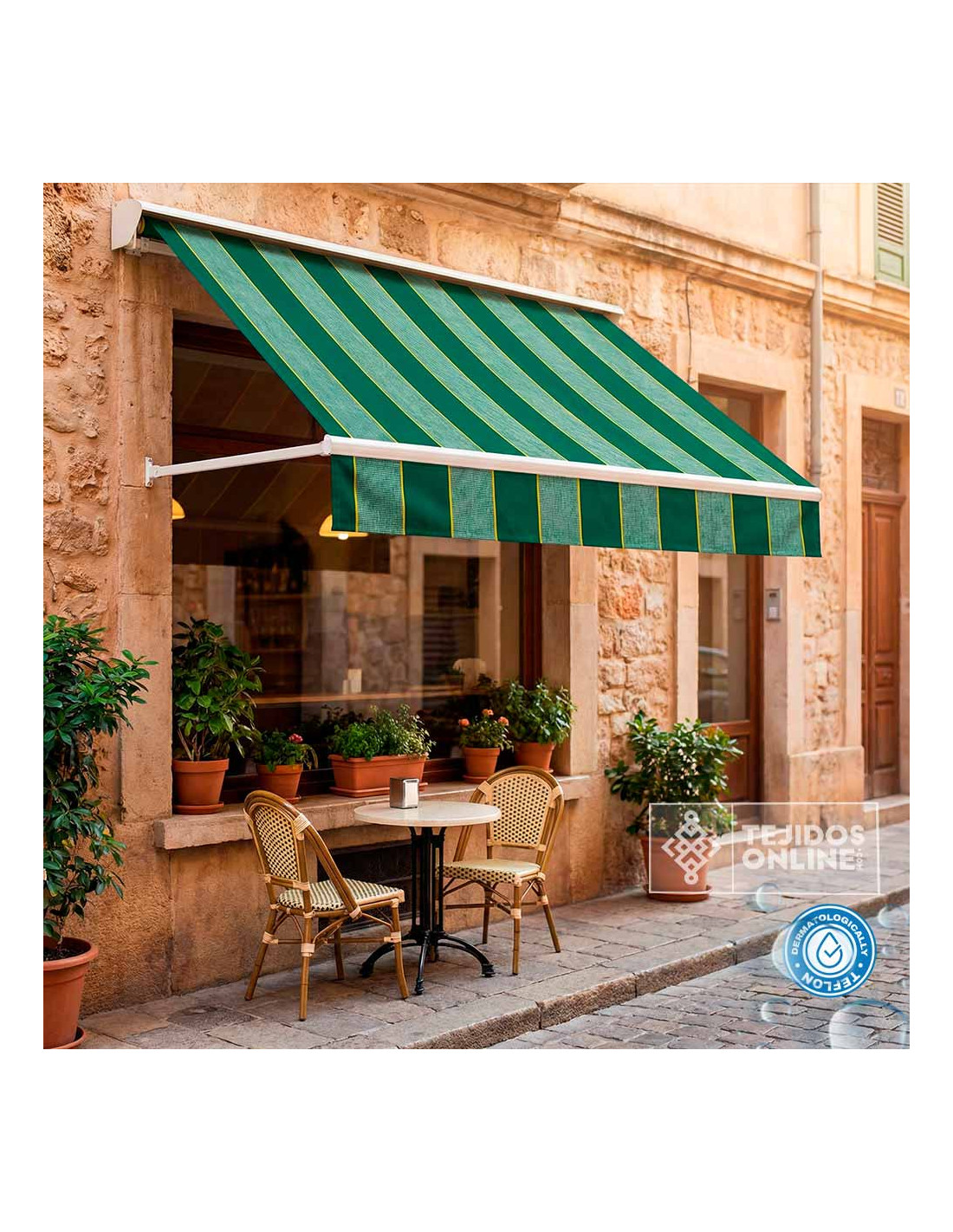 Toldo con Rayas Verde Teflón Sofia