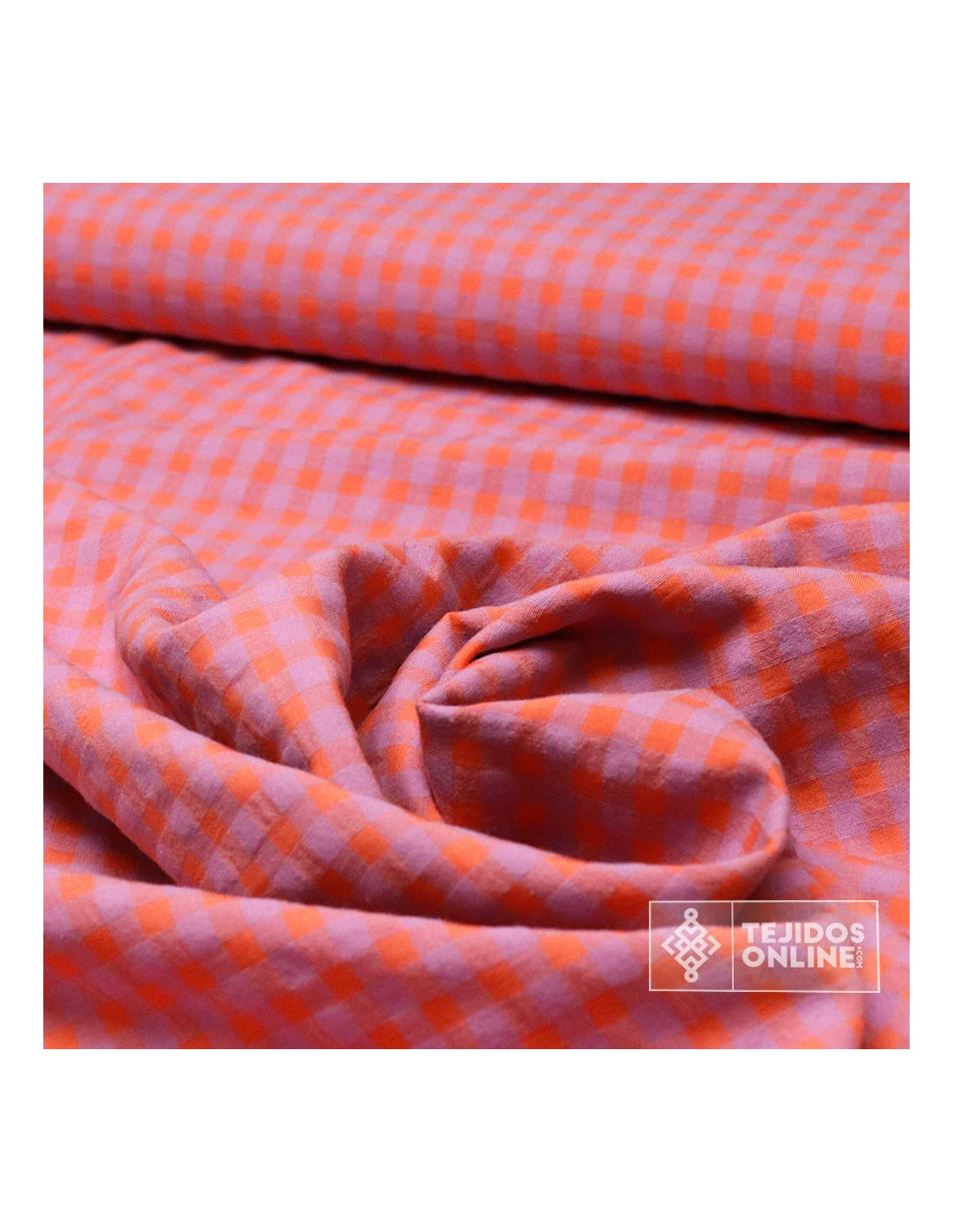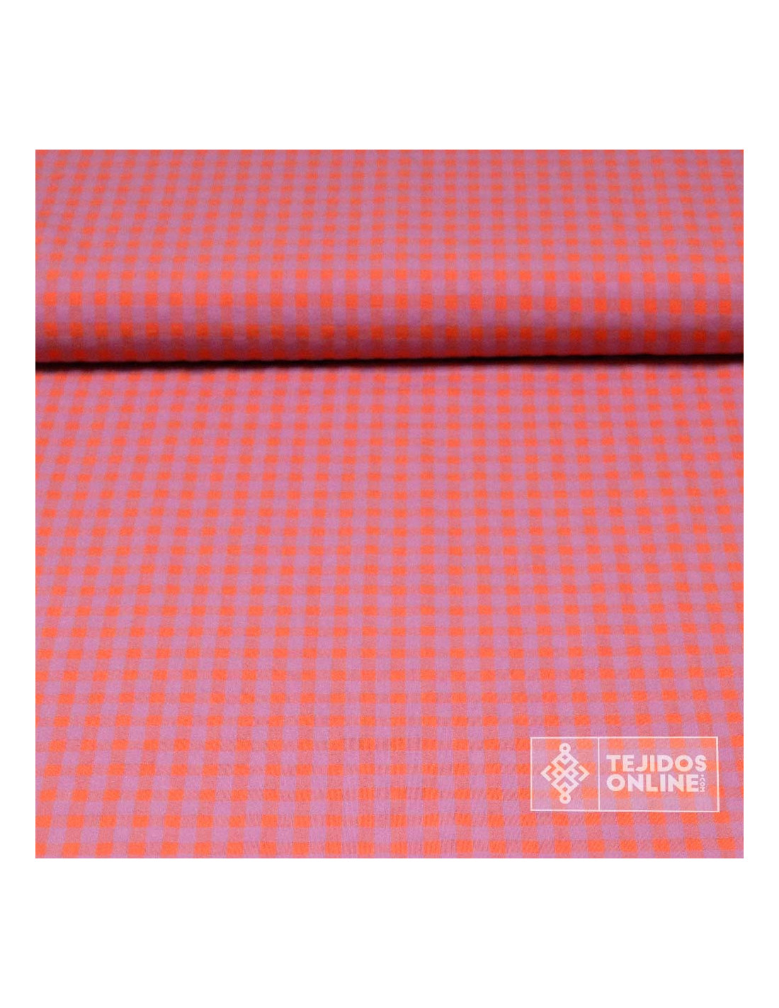 Tejido vichy Seerschuker con un encantador diseño de cuadros medianos de 0.6 x 0.6 cm. Disponible en diversidad de colores muy originales: verde lima con gris perla y malva con coral, malvas con buganbilla, naranja fluor con beige, etc... Esta tela combina suavidad, ligereza y un efecto ligeramente arrugado propio del Seerschuker, que evita tener que plancharla.